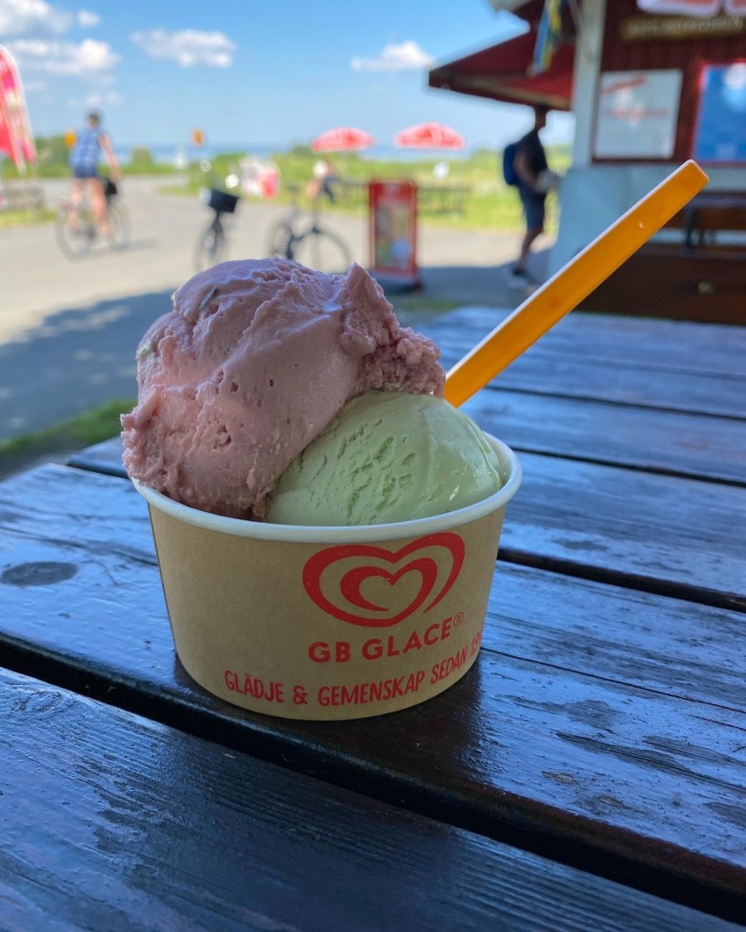 Vi stannade till i Kumlaby och köpte varsin glass.