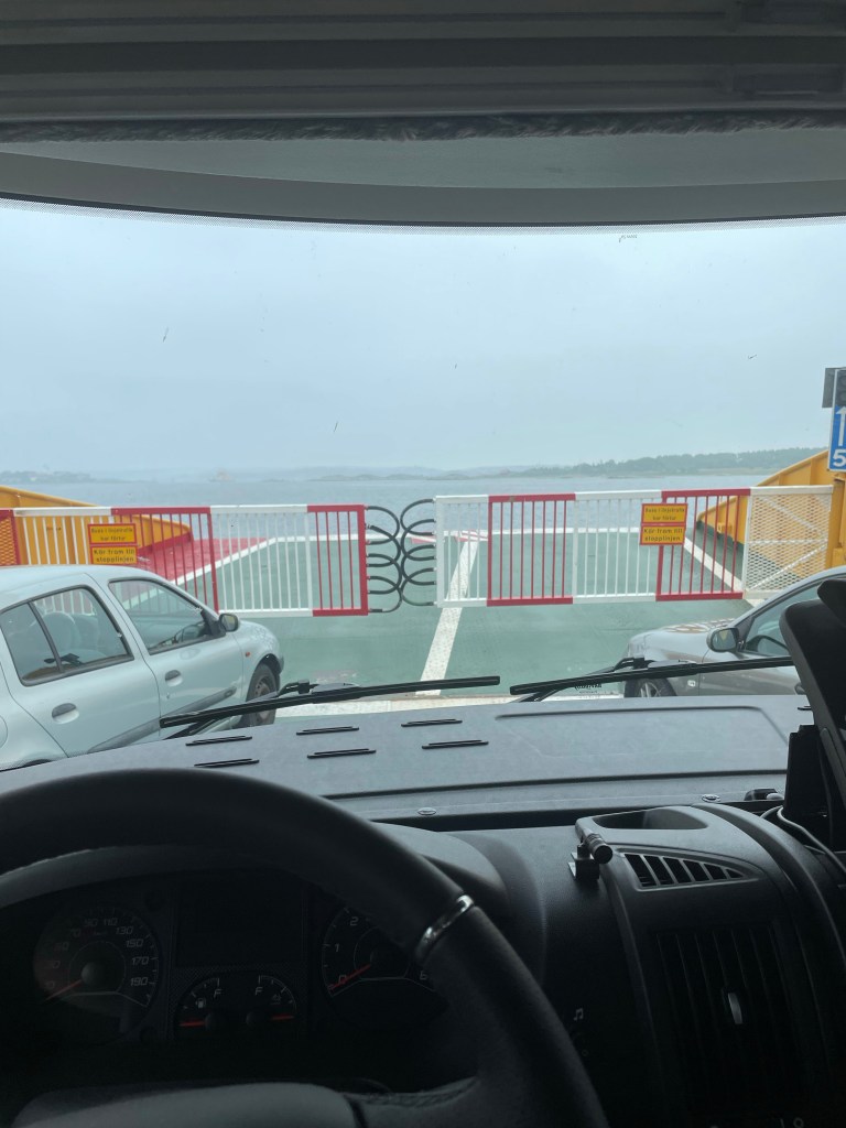 Efter frukost så körde jag bort för att tömma gråvatten och latrin samt fylla färskvatten. Vi fortsatte sedan till macken och tankade.