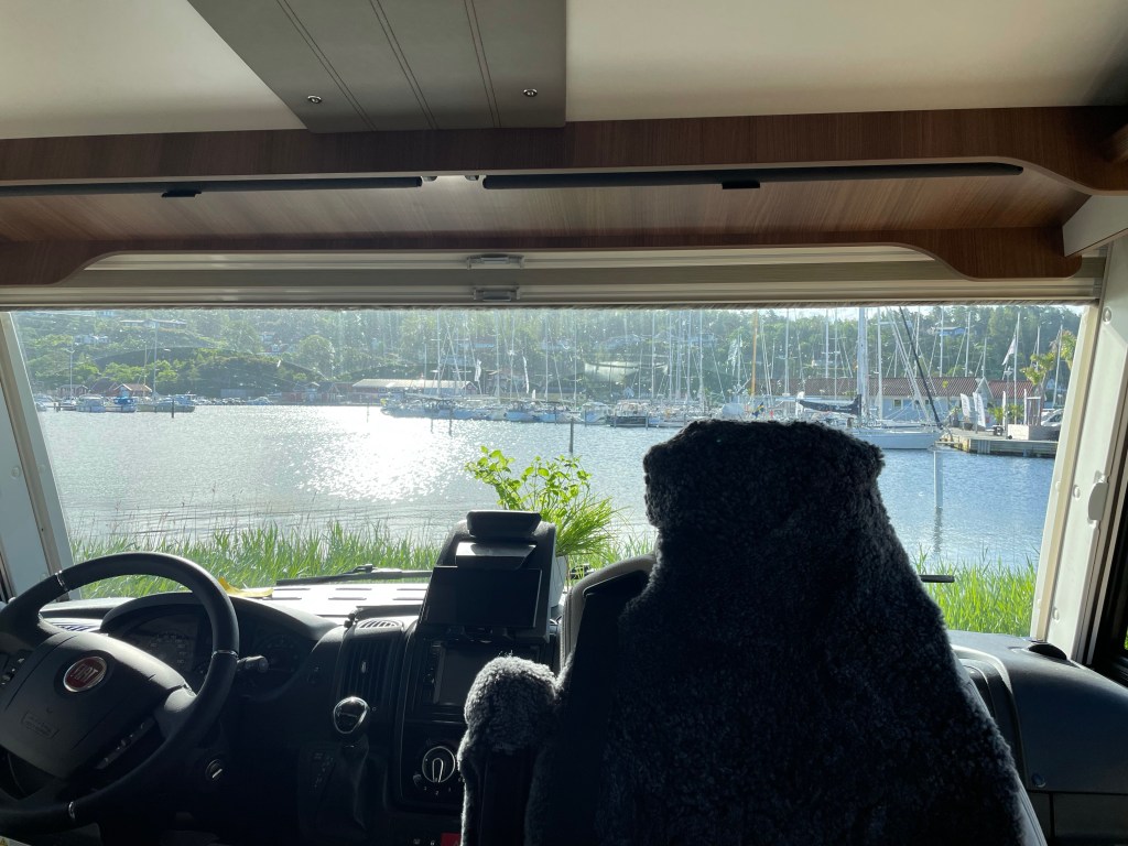 Tillbaka vid husbilen så tar vi lite lunch. Vi sitter utanför men det går inte ha ute markisen eftersom det blåser en hel del här med.