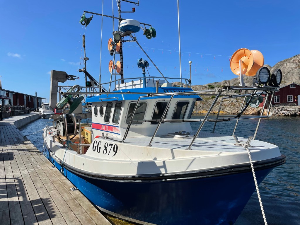 Det blåste mycket i natt då det var tur vi inte stod för nära havet. Efter frukost så körde vi in till Skärhamn för att handla och gå en runda på hamnen.