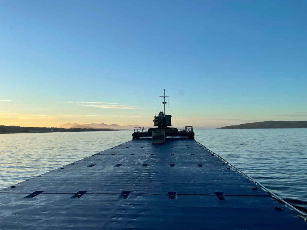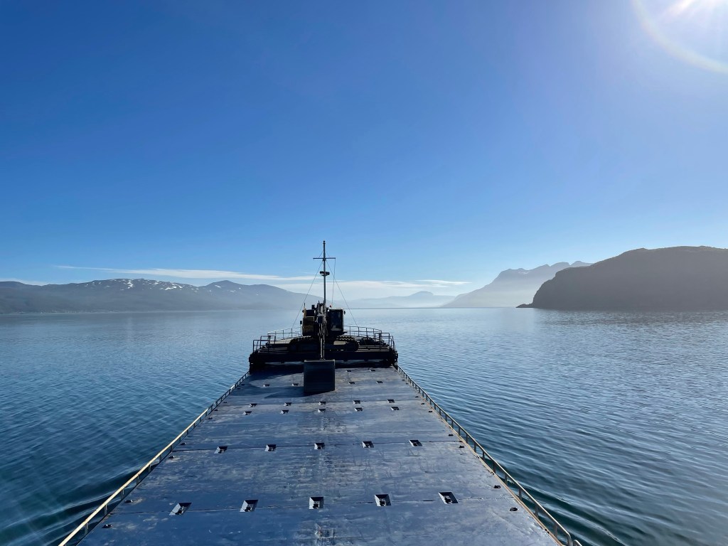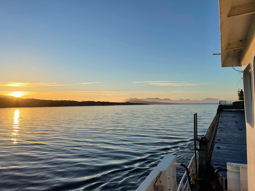 11:00 Förtöjda vid väntekaj i Tromsö. Bjugnfjord ligger här med maskinhaveri så Harald kommer ombord en stund.