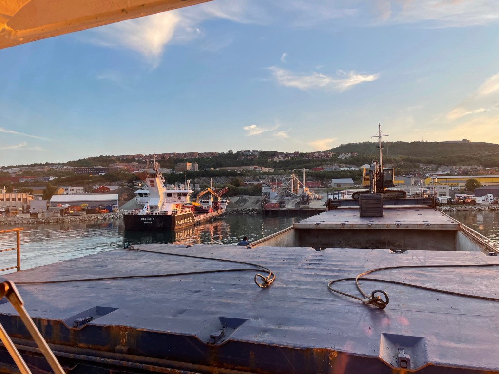 08:15 Förtöjda i Djuphamn och väntar på klartecken för att öppna upp och börja lossa.