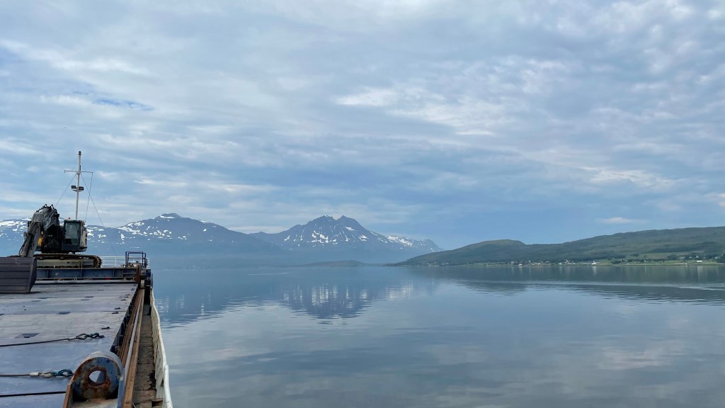 20:00 Kommer på vakt och tar mig lite kaffe. Det småregnar lite men inte mer än att de kan fortsätta lägga asfalt. Har fått besked att vi ska lasta i Tromsö i morgon kväll. Så vi får se när vi är färdig lossade här.