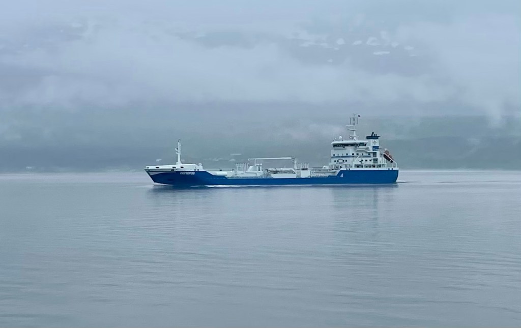 09:35 Förtöjda på Skattöra och avvaktar lossning av resterande asfalt.