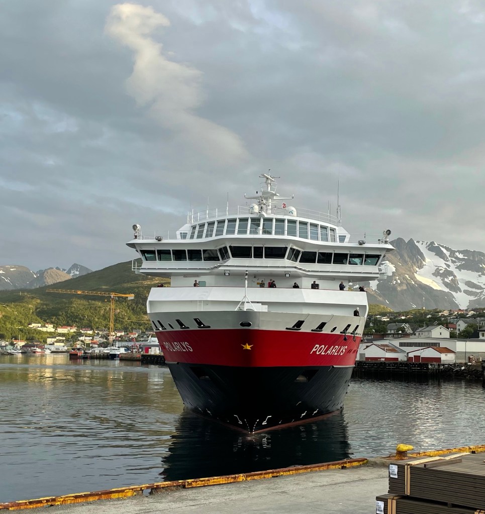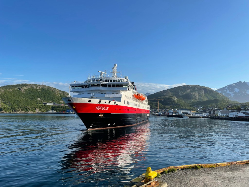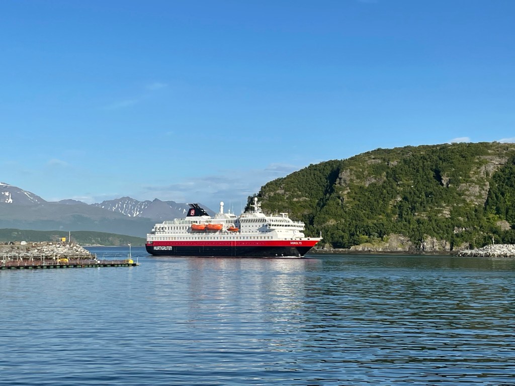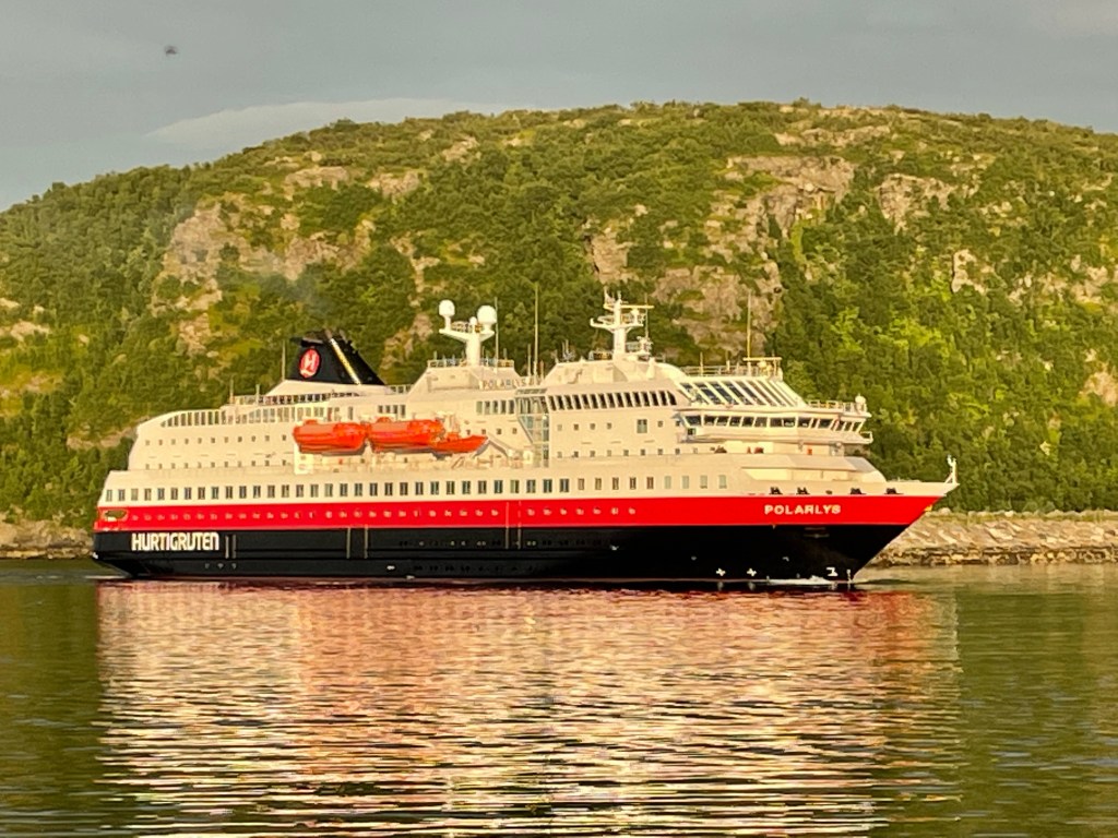 Tillbaka vid båten så kommer Hurtigruten Nordlys in i hamnen.
