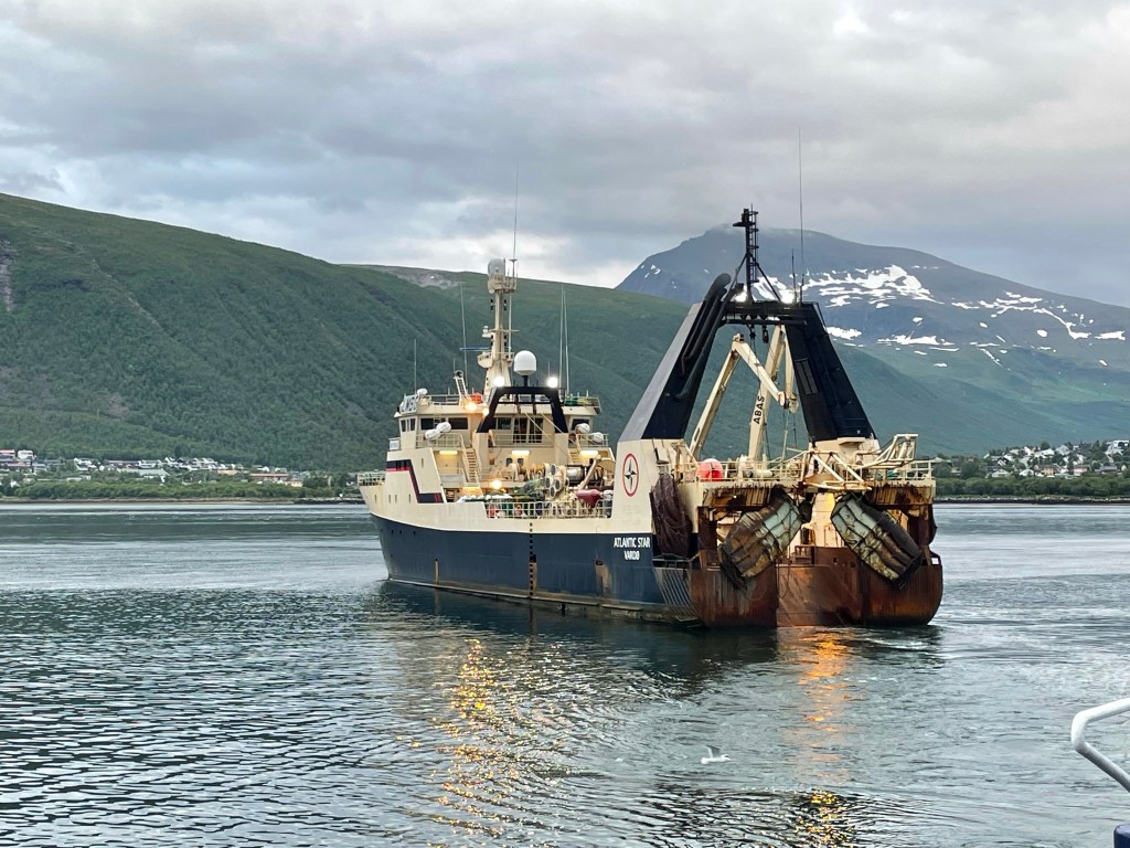 18:25 Förtöjda i Tromsö och börjar lossa. Jag går upp till affären för att hämta provianten jag beställt.