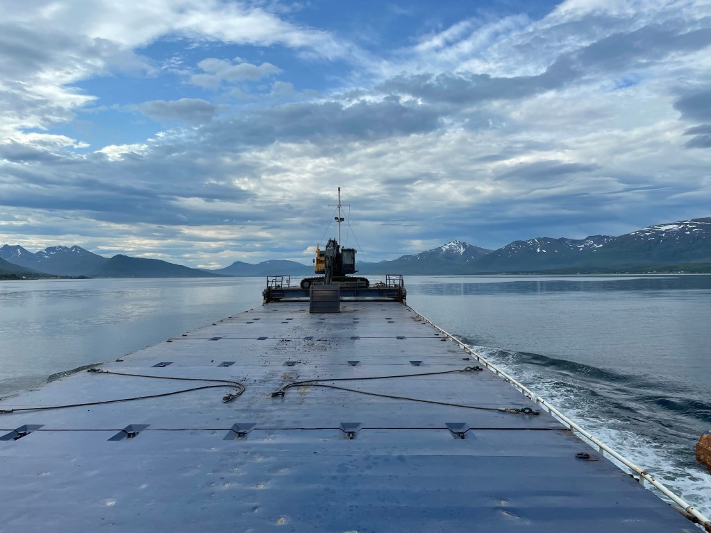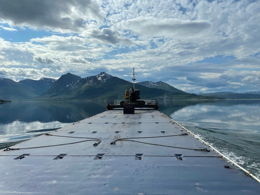07:05 Färdig lastade med 1450 ton asfalt och sätter kursen tillbaka ner mot Bergneset.