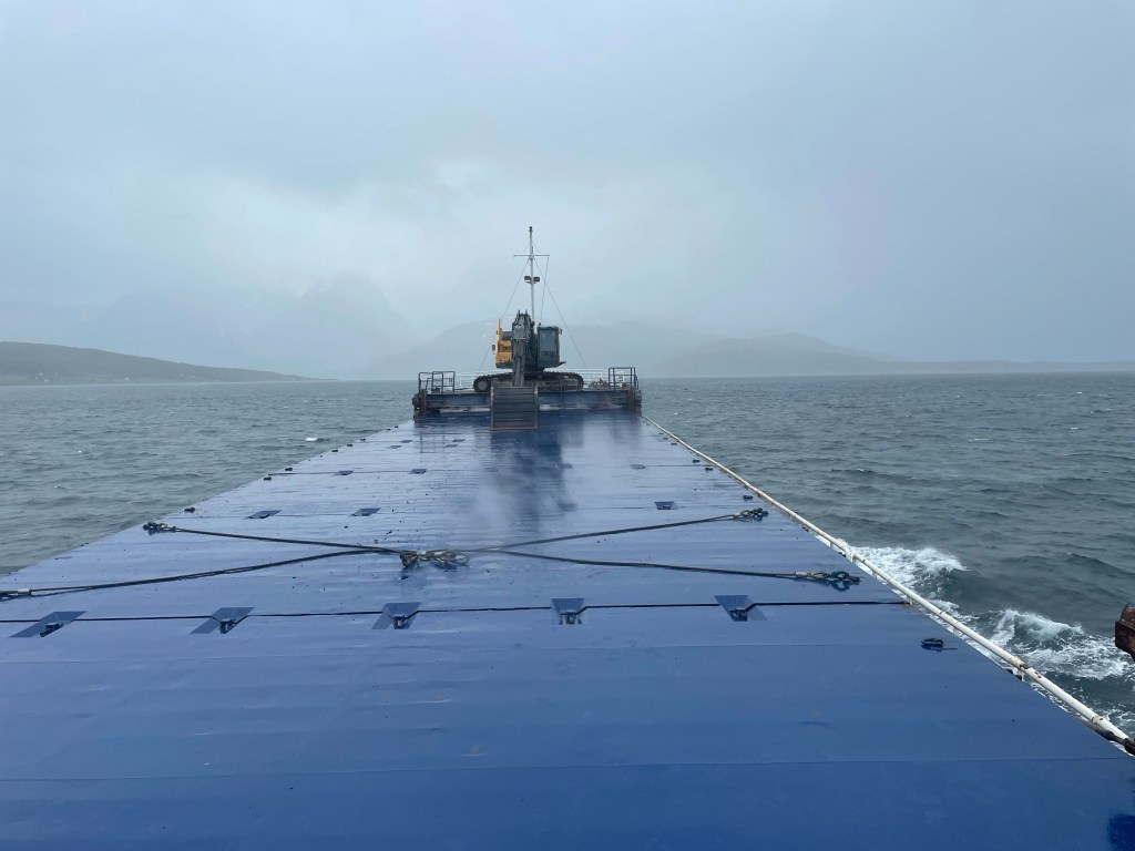 15:15 Färdig lastade med 2200 ton grus och sätter kursen mot Tromsö.
