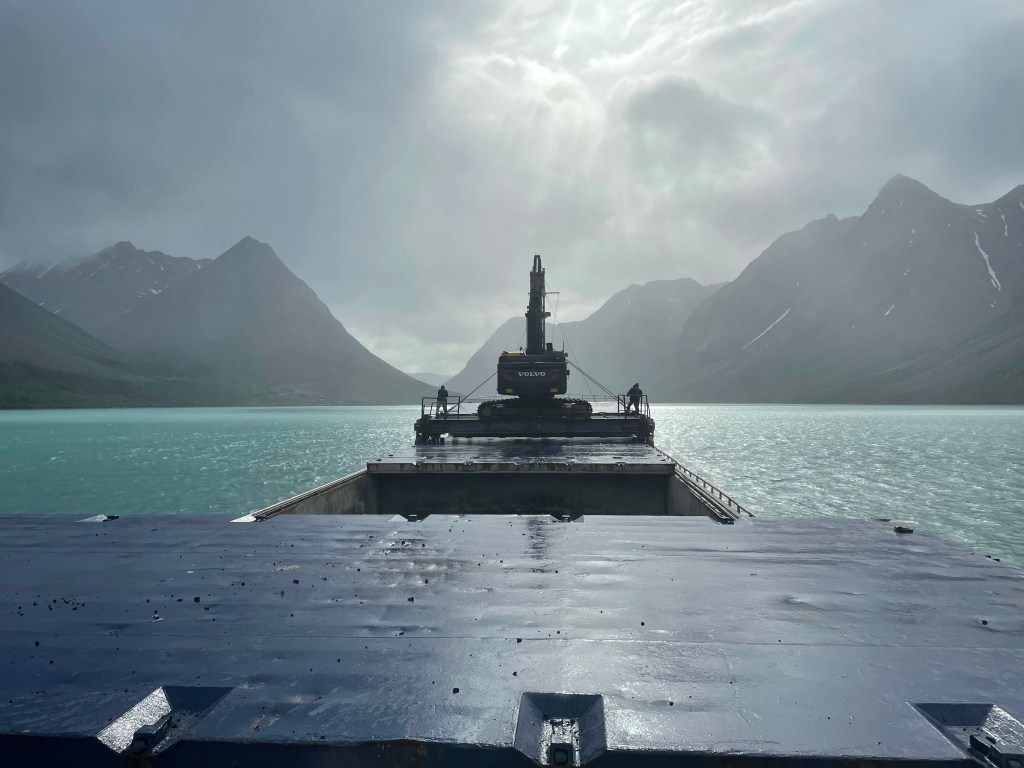 09:50 Förtöjda i Tyttebärvika och börjar lasta. Vi skall ha full last med grus till asfaltsverket i Tromsö.