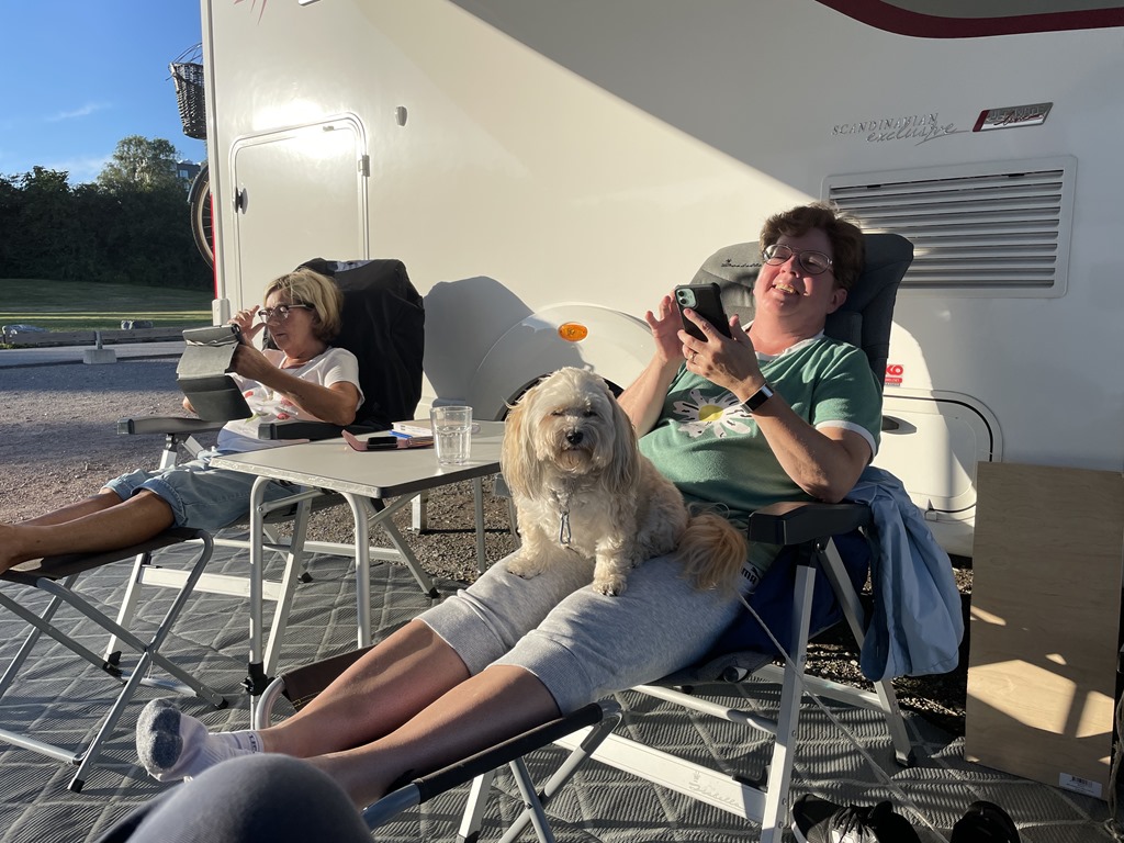 Efter maten så gick vi tillbaka till husbilen och satte oss utanför i solskenet