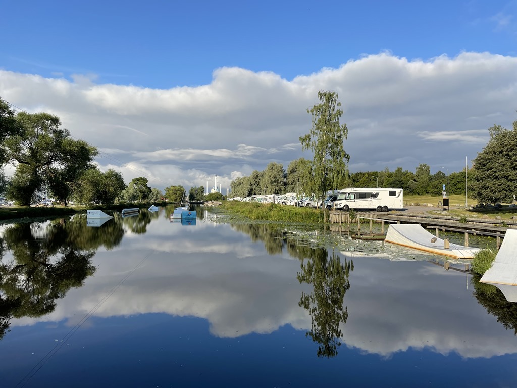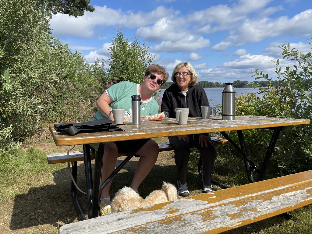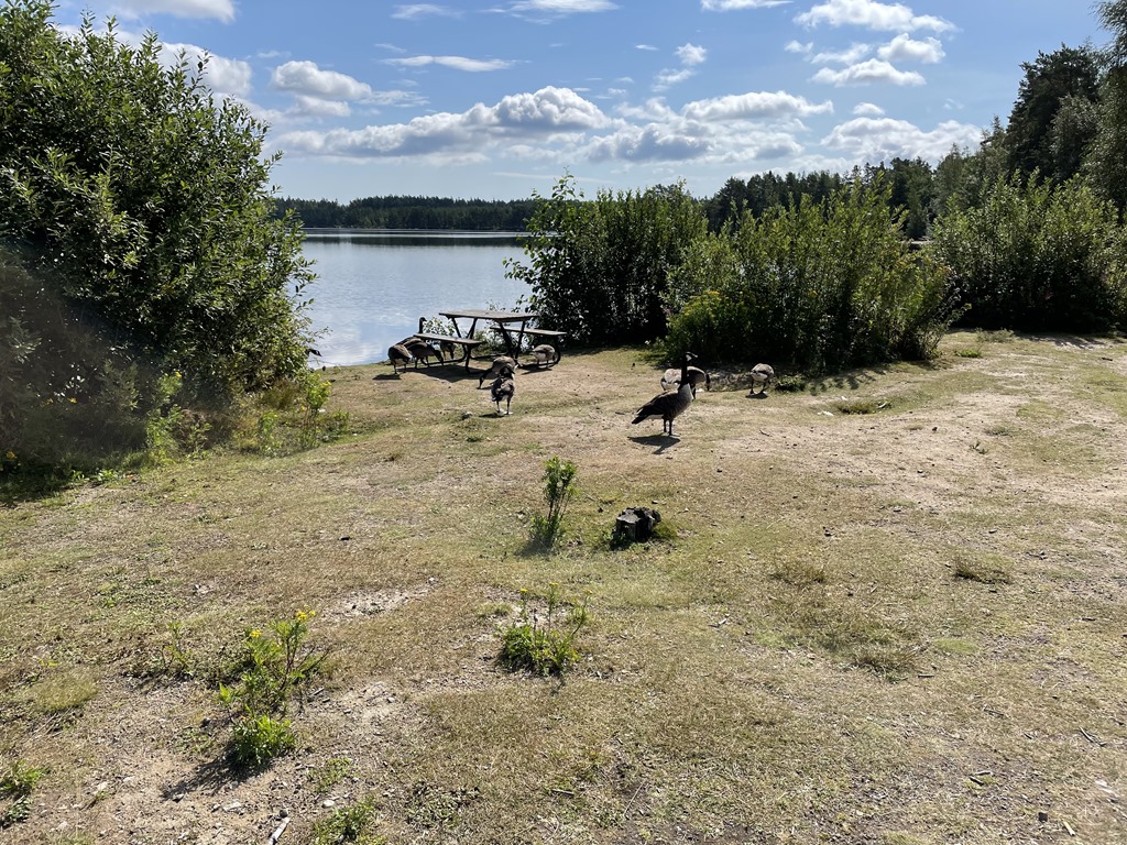 Vi gjorde ett första stopp vid Tönnebro där vi tog lite kaffe och fika nere vid sjön. Men vi fick välja ett bord utan kanadagäss.