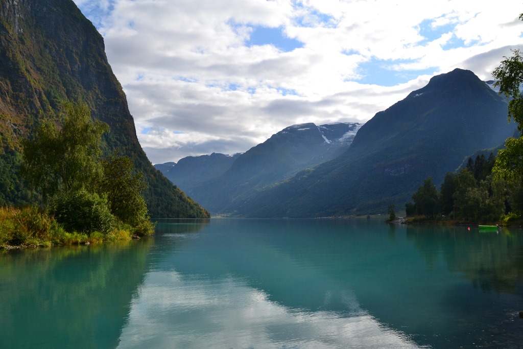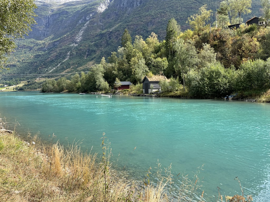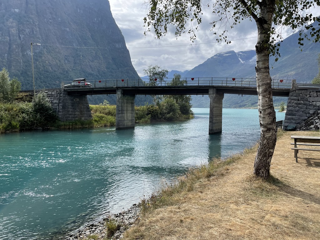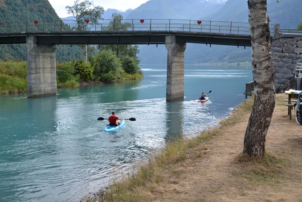 Vi fortsatte sedan in mot Oldenvattnet och stannade på Oldevatn Camping. Vi fick en jättefin plats vid strömmen mellan sjöarna.