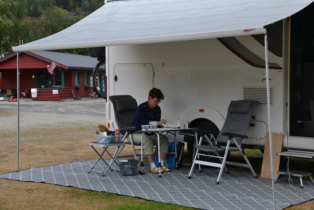 Jag ordnade lite lunch sedan satte sig Britta och måla medan jag gick en runda. Man blir ju aldrig trött på vyerna i denna dalen trots det växlande vädret vi haft idag.
