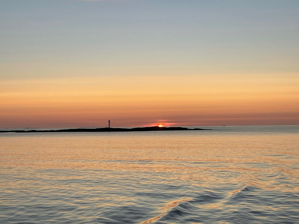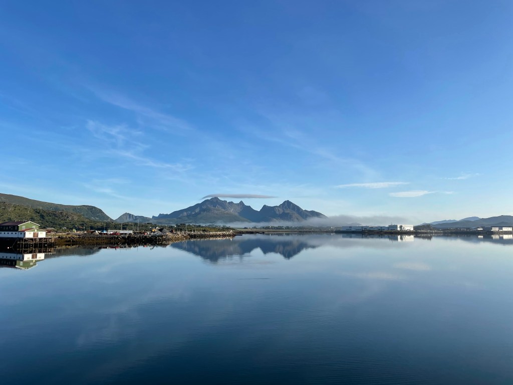 08:00 Kommer på vakt och tar lite kaffe. En helt underbar morgon här ute i Lofoten.