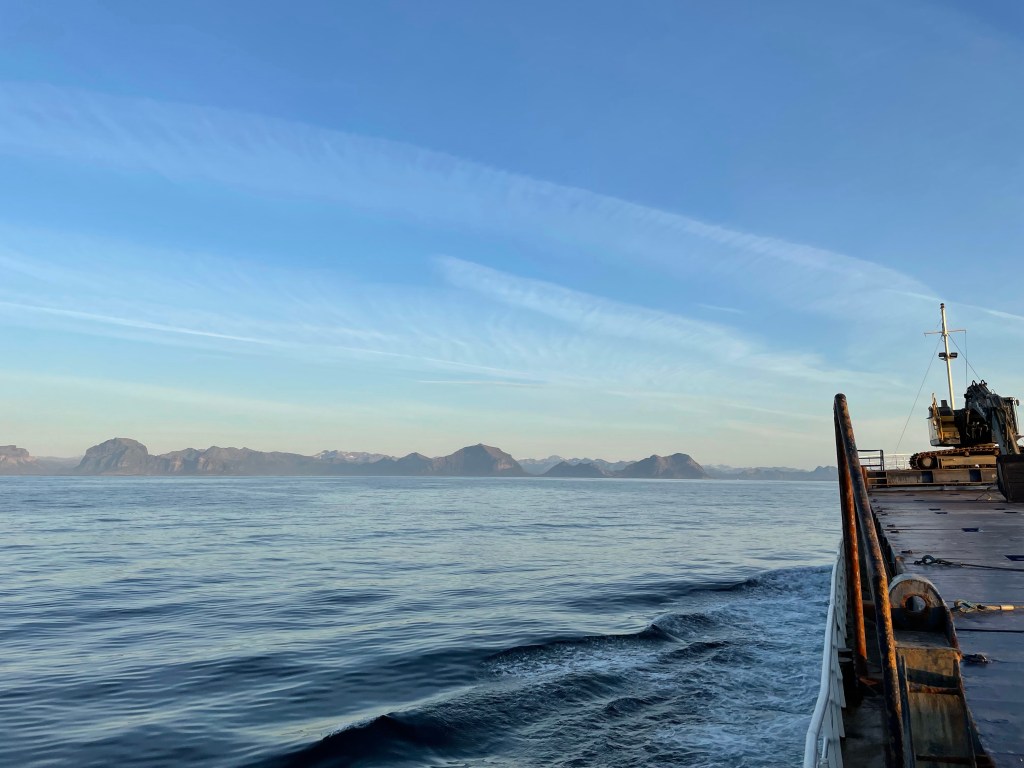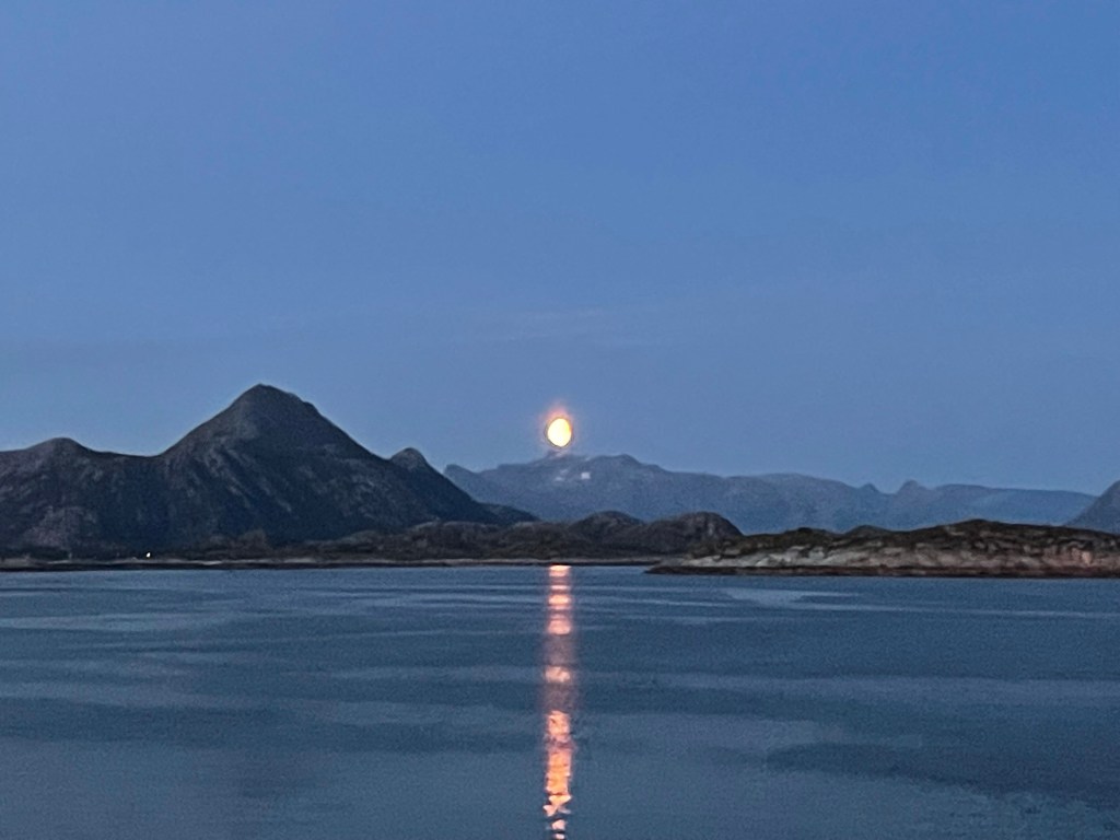 20:00 Kommer på vakt och vi närmar oss kusten igen efter att ha passerat över Vestfjorden.