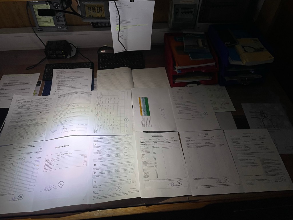 Så får jag kopiera upp allt i morgon så rätt mängd av öka papper finns när Tull och Gränspolis kommer ombord i Murmansk.