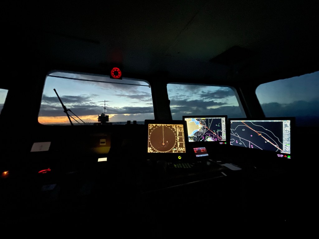 20:00 Kommer på vakt och tar mig lite kaffe. Det är fortfarande ca 4 timmar till Norska kusten. Som vanligt på Barents havet så är det lite trafik. Så det är bara att sätta på stereon och dricka kaffe.