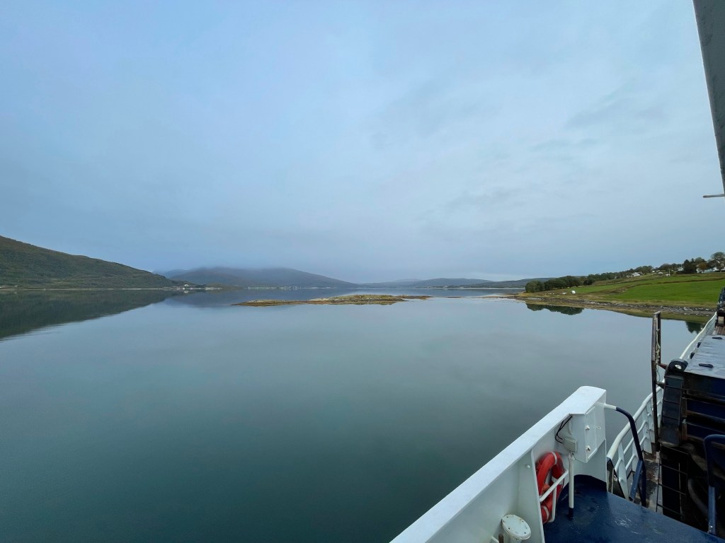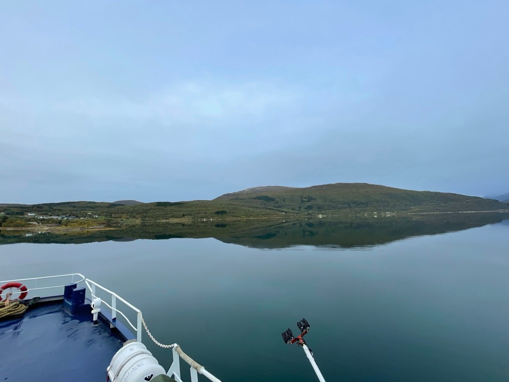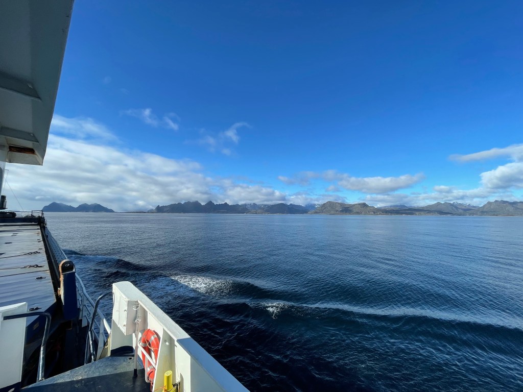 09:40 Färdig lossade och avgår ner genom Tjeldsundet.