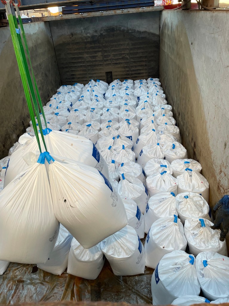 Det går fort idag. Efter 3 timmar har vi lastat 530 big bags.