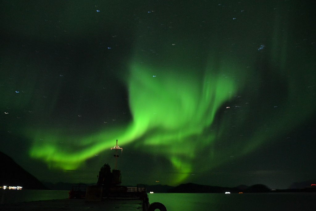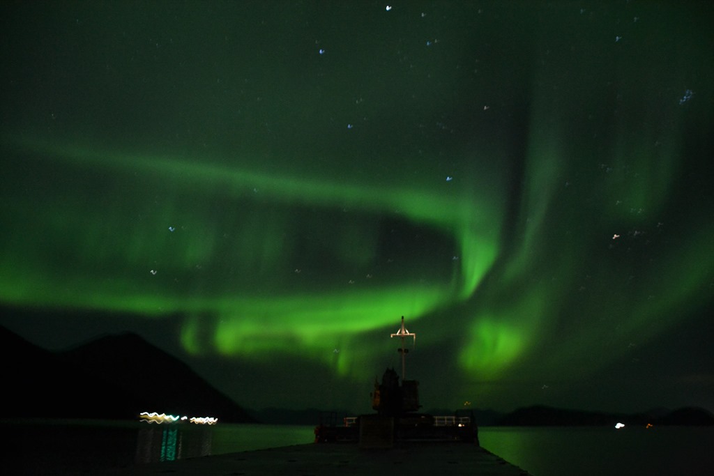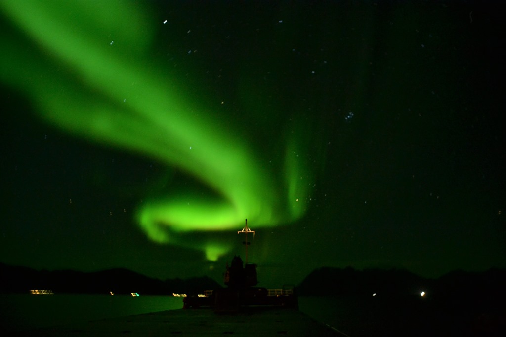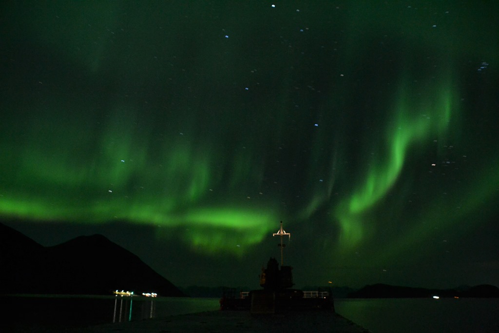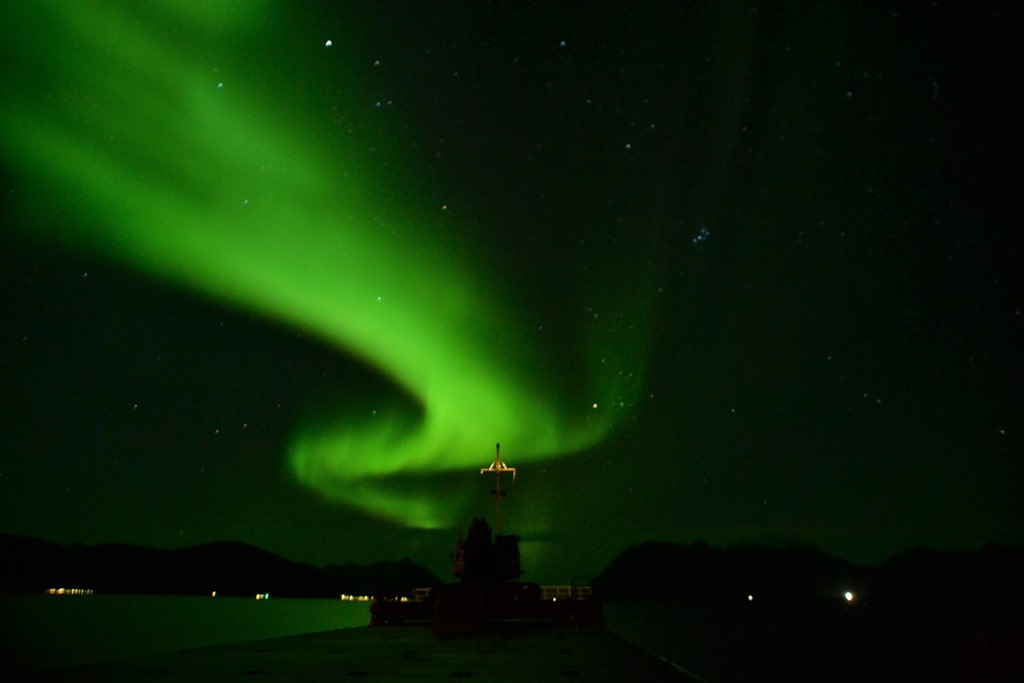 20:00 Kommer på vakt ute på Finnmarkskusten. Stilla och fint väder så det kanske blir norrsken i kväll med.