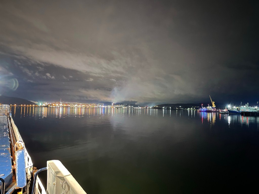 22:30 Ankrat på Murmansk redd och inväntar immigrations för utklarering.