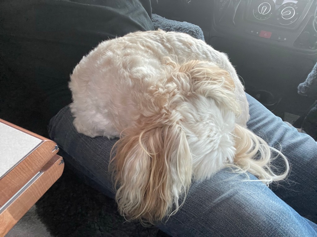 Vaknar och tar lite kaffe med Chilla i knät.