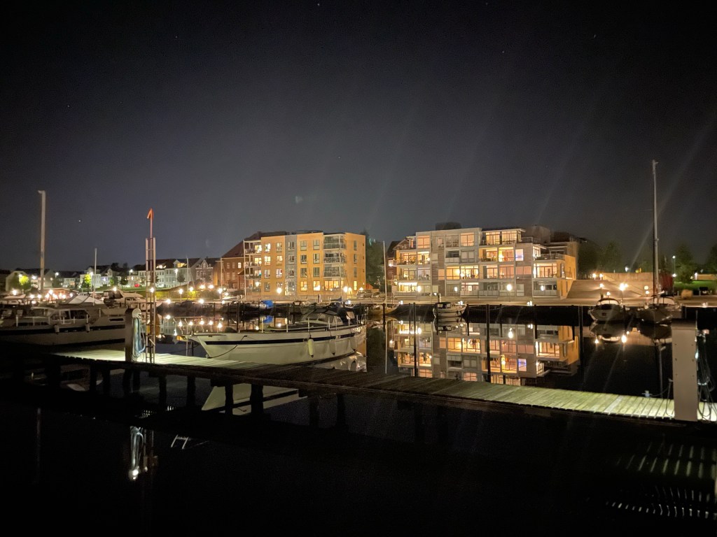 Vi fortsätter sedan västerut och stannar först i Haderslev. Båtklubben där har en fin ställplats och fint servicehus precis som det brukar vara i Danmark. 130:- natten med ström.