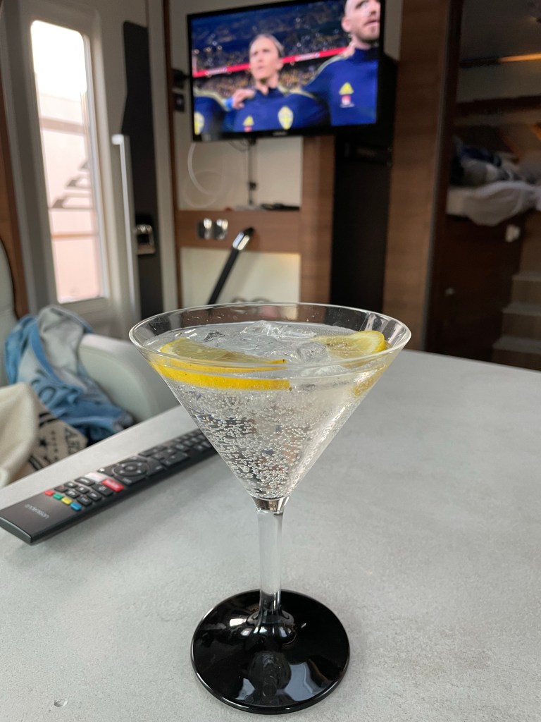 Efter hockeyn så var det ju landskamp i fotboll mellan Sverige och Kosovo. Så jag gjorde varsin Gin Tonic till det.