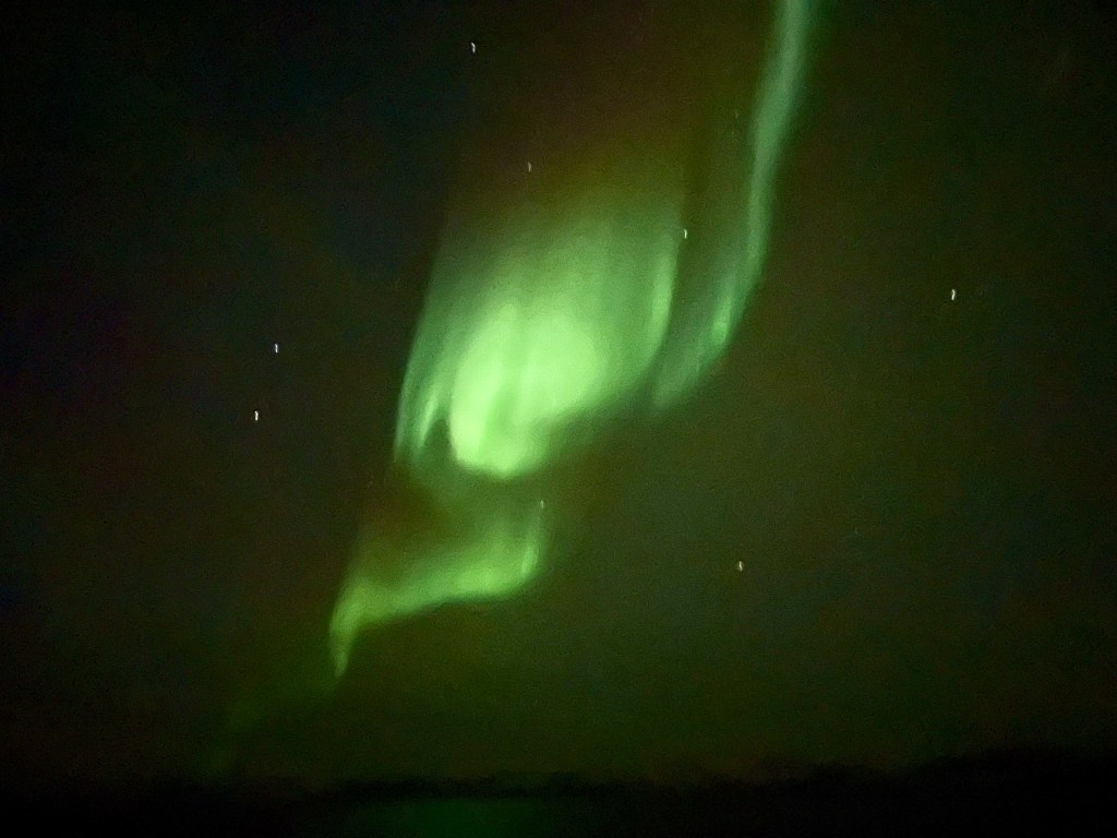 Det blir lite norrsken på vägen in. Men desto närmare bebyggelse vi kommer så försvinner det.