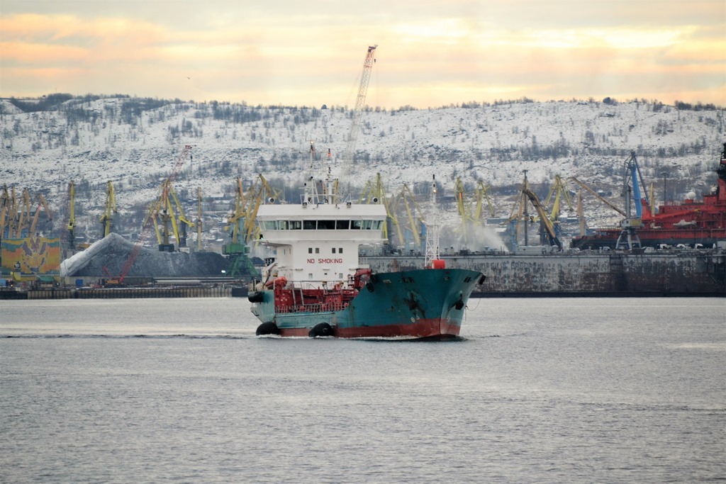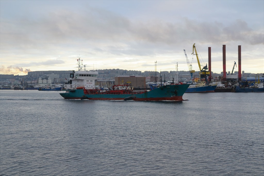När vi ligger här så kommer en båt som jag började min bana i Norge på då under namnet Bergskald. När jag den sedan såldes till Bergen Tankers samma dag som jag skulle mönstra till Skeppare och fick namnet Bergen Faith. Jag fick då inte jobbet som skeppare och jobbade i något år i Sverige innan jag fick komma till Bergen Tankers och jobbet som Överstyrman fram tills den såldes till Ryssland 2012. Den har sedan dess seglat här i Murmansk som bunkerbåt.