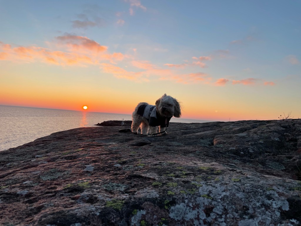 Strax innan solnedgången så tog vi en promenad österut längs stigen. Blev en fin solnedgång.