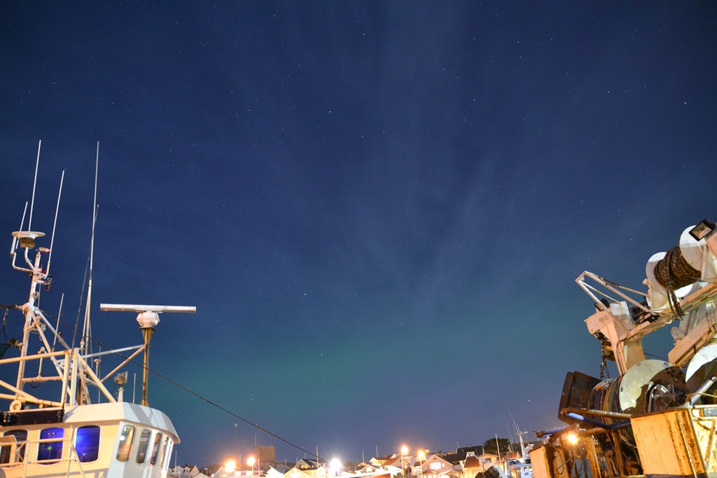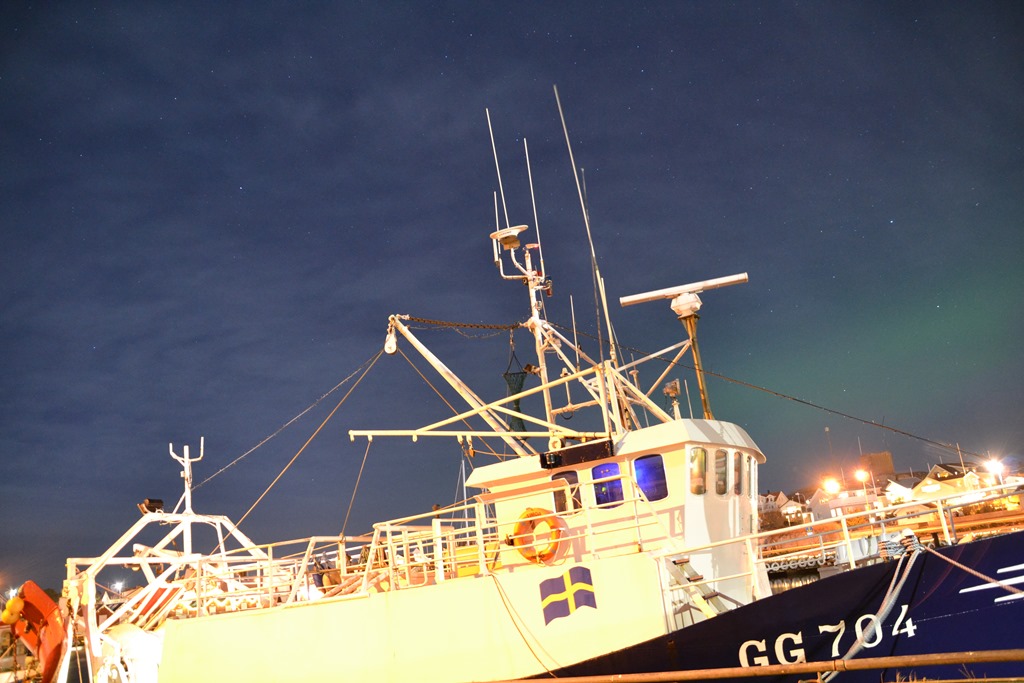 Jag avslutade dagen med en promenad på hamnen och fick faktiskt sett lite norrsken idag. Det syntes lite dåligt när det var så mycket ljus från byn.
