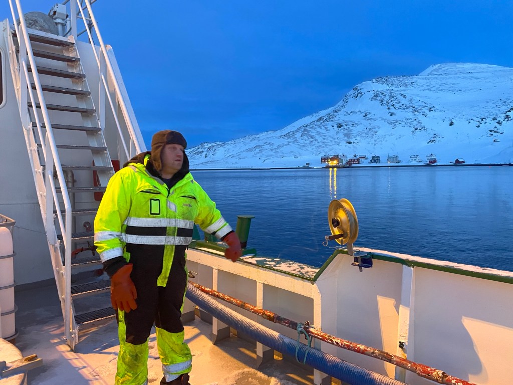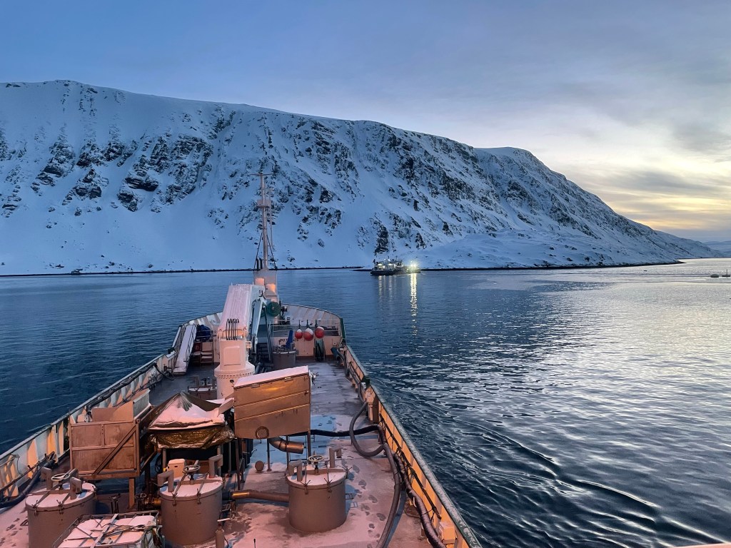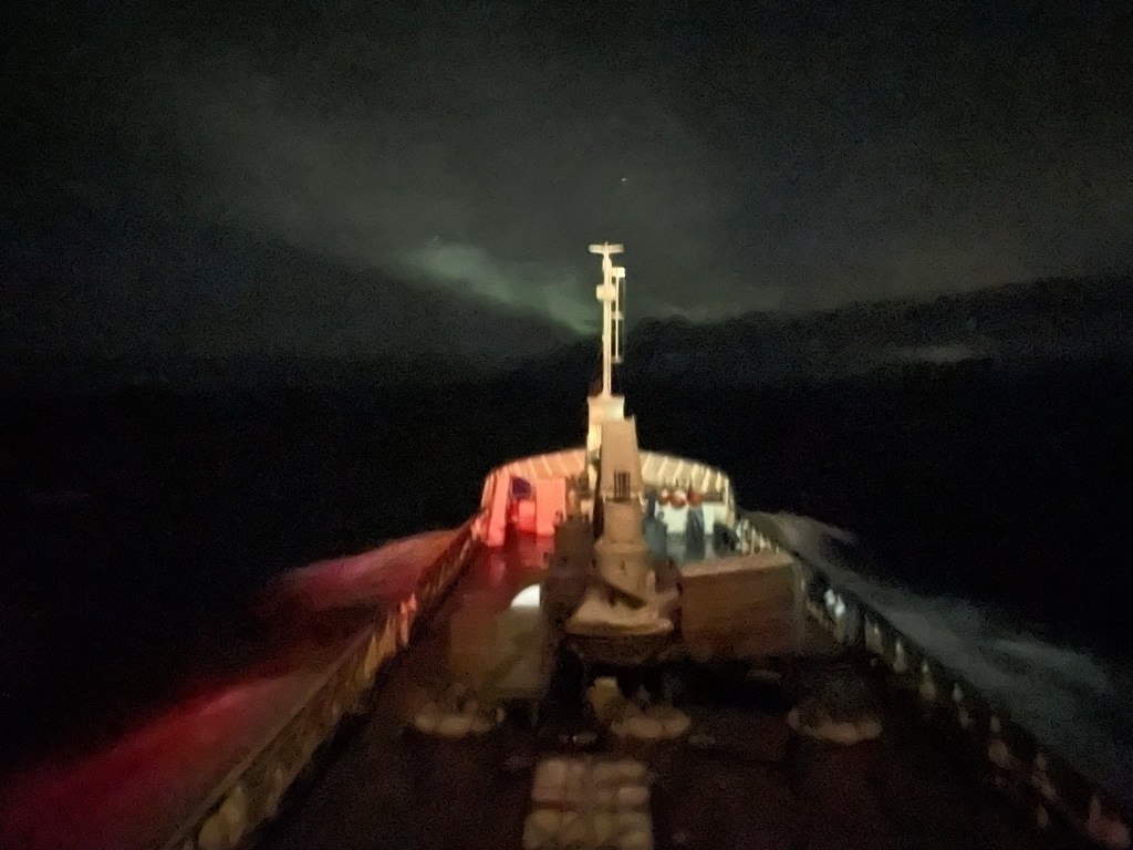 Vi fortsätter sedan vidare österut förbi Nordkinn. Lite norrsken men tyvärr för mycket rullande för att få bra bild i kväll.