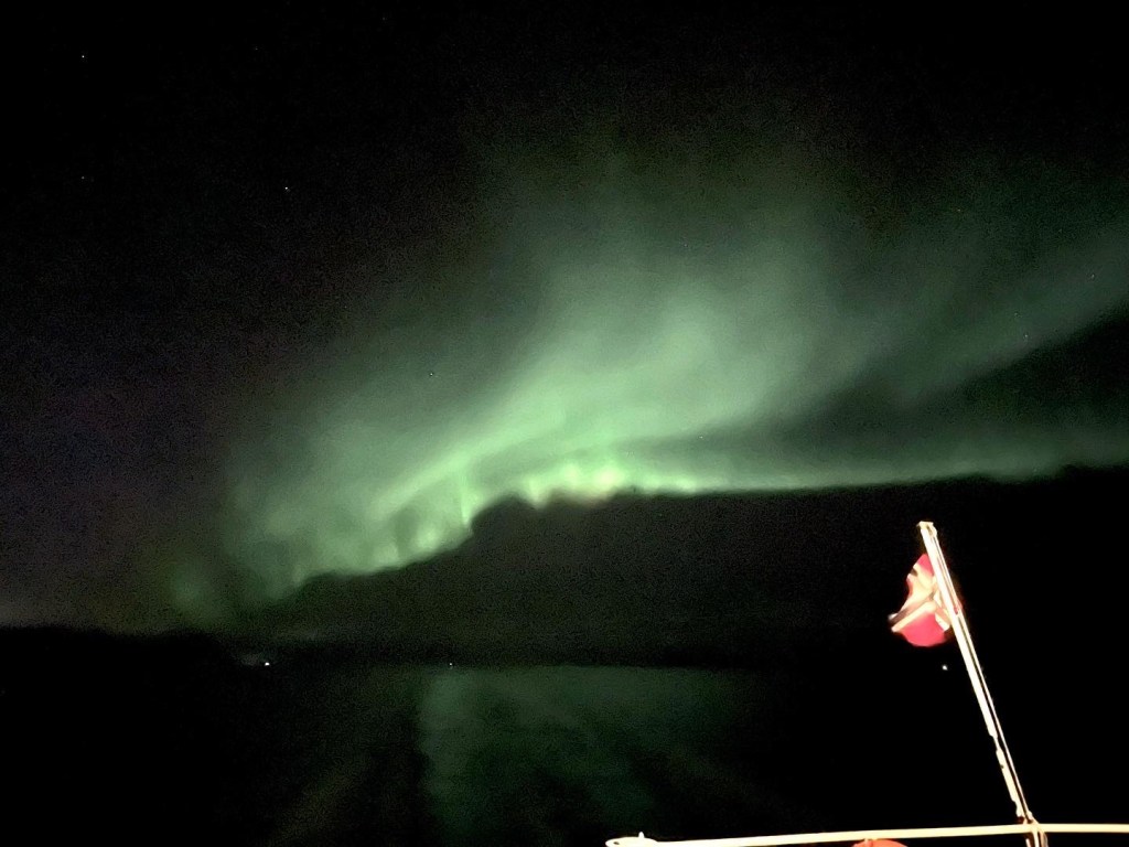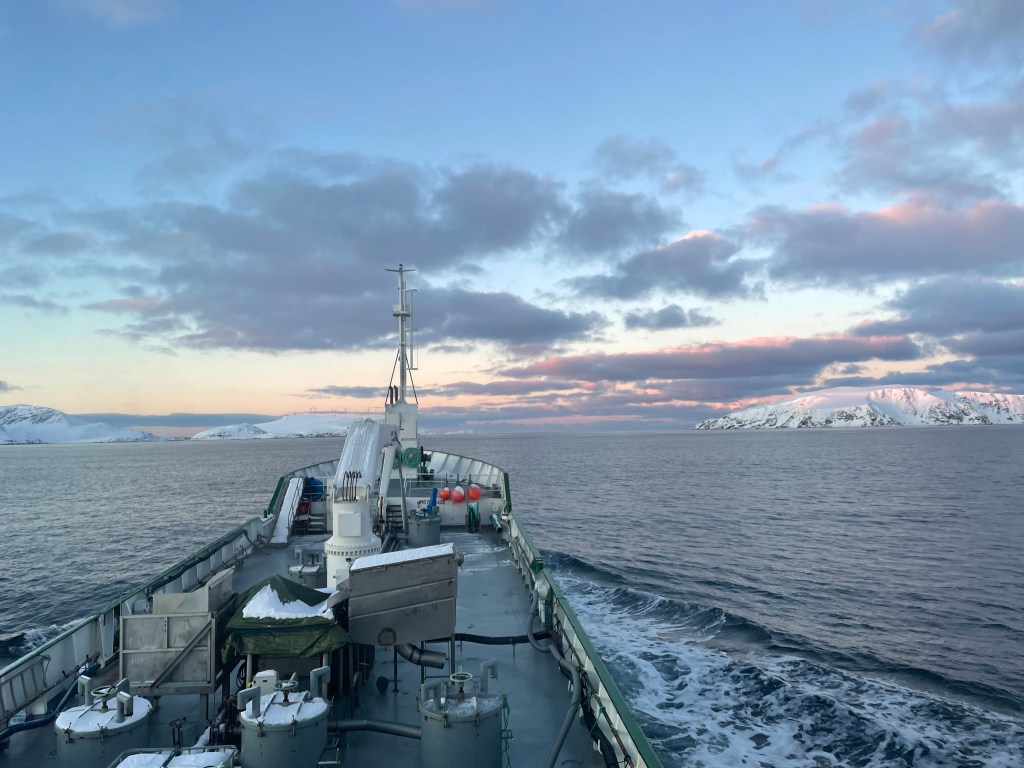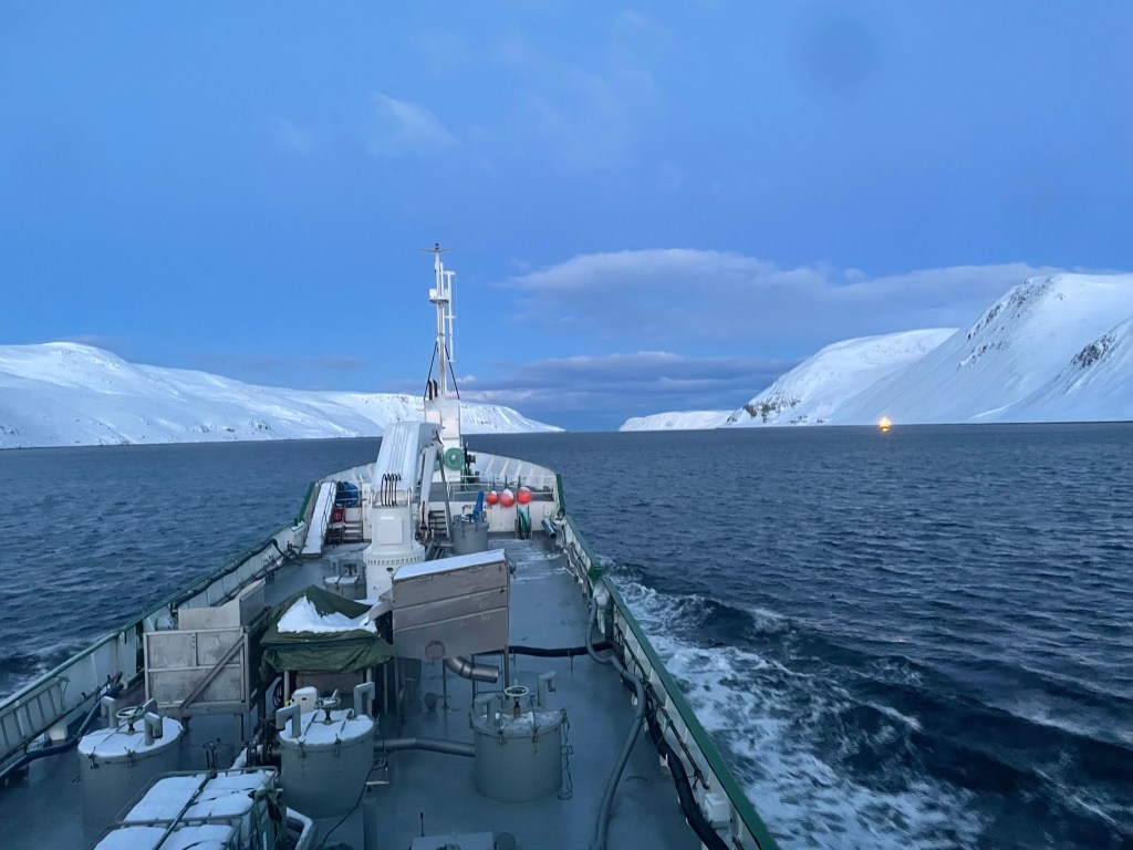 Till kvällen tar jag vakt igen och vi börjar närma oss anlägget nere i Kvænangen.