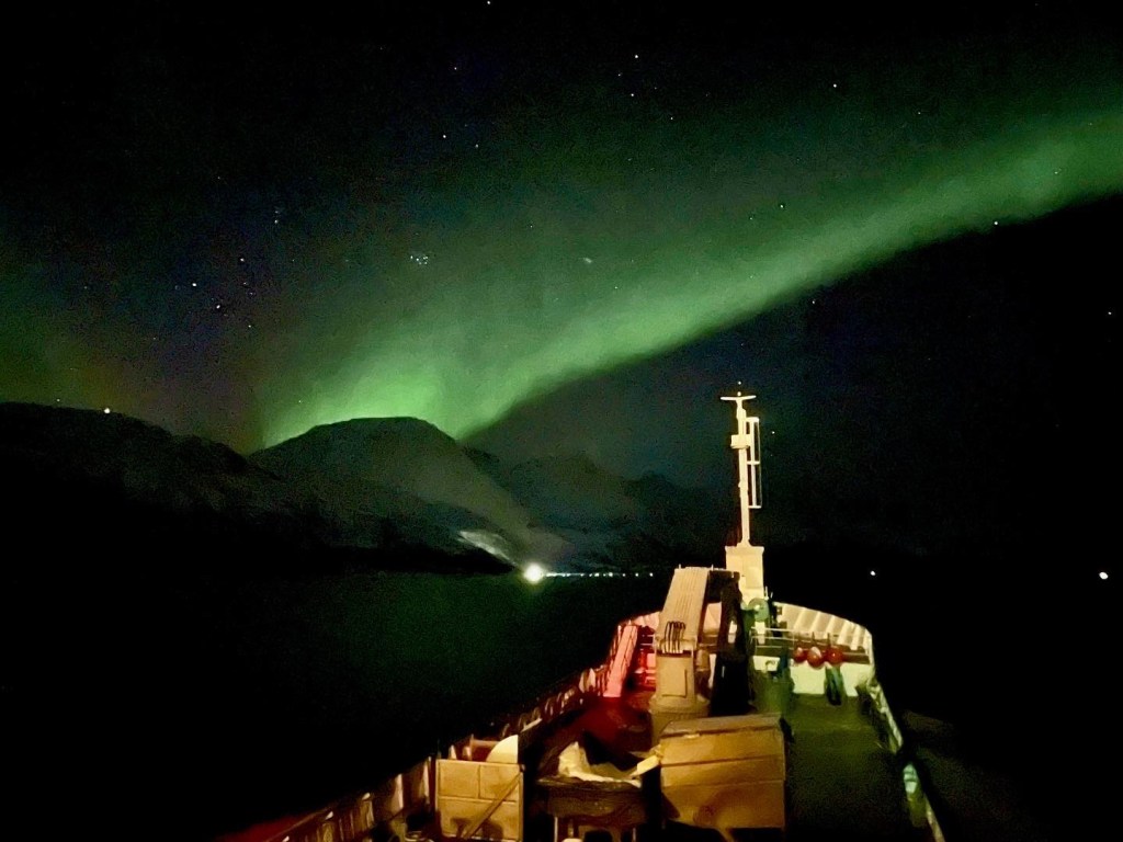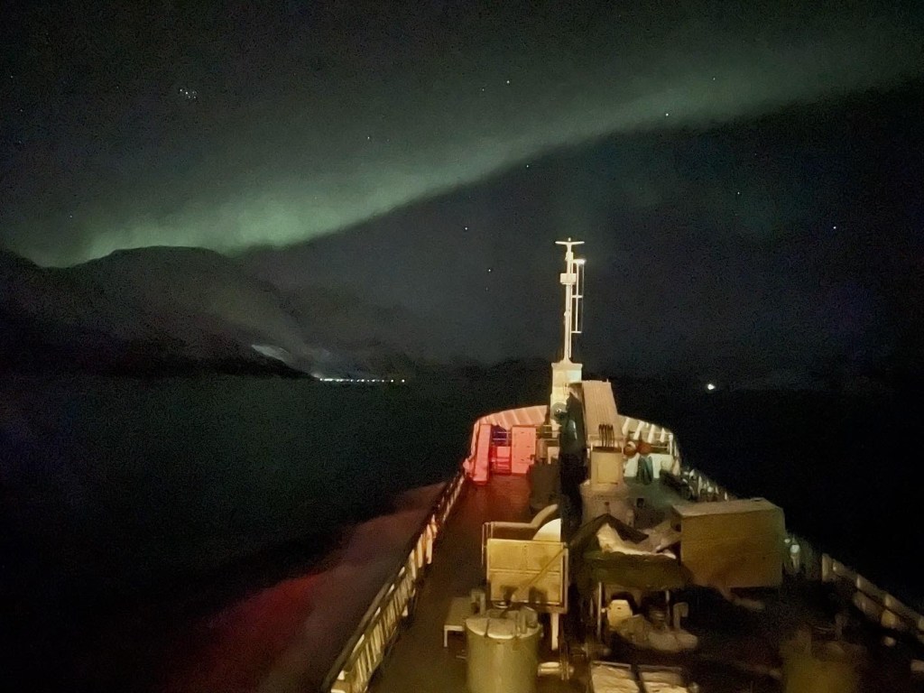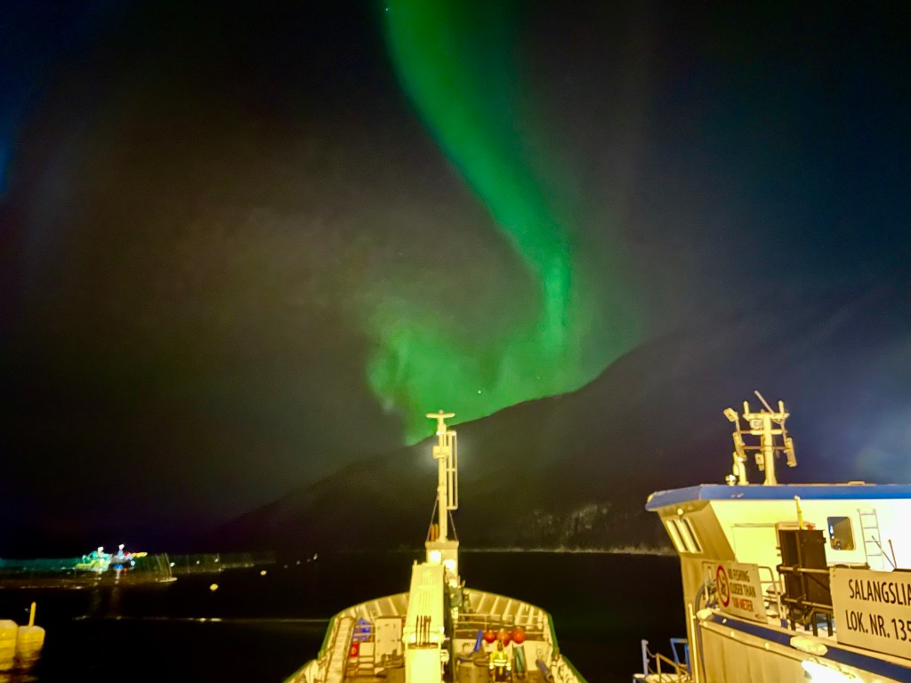 Vi lastar och avgår efter 50 minuter. Blir lite norrsken innan jag lägger mig.