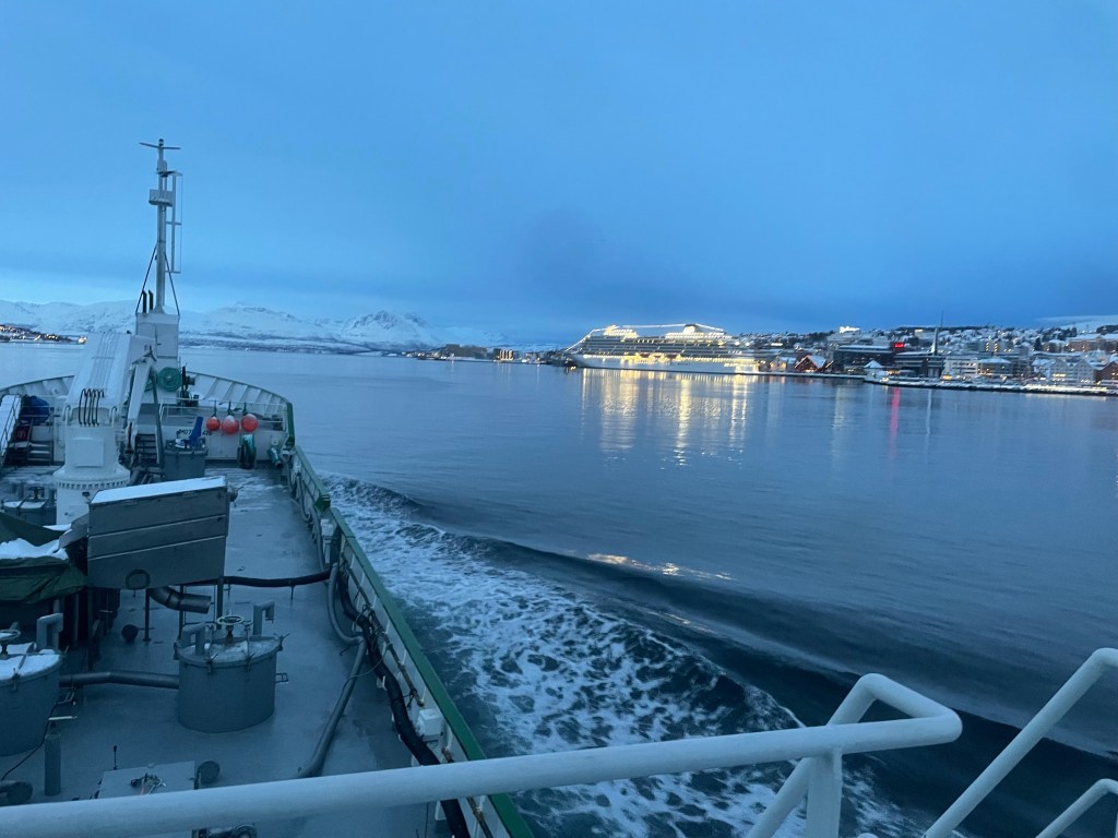 Efter frukost så närmar vi oss Tromsö och det börjar ljusna.