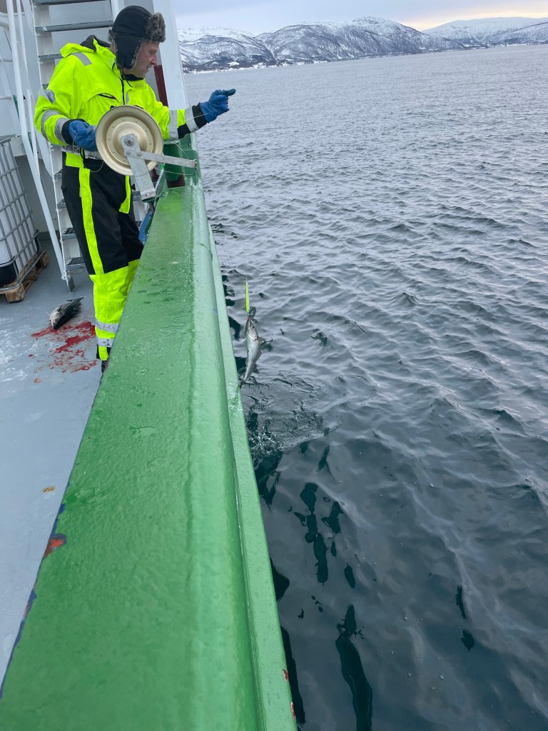 Till kvällen kommer jag på vakt igen när vi närmar oss anlägget i Salangsfjorden. Vi lastar och går sedan vidare till nästa som ligger 30 minuter härifrån.