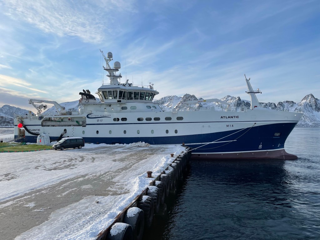 Vi lastar lite ensilage från fiskemottaket. Sedan fortsätter vi till nästa anlägg här i Vesterålen.