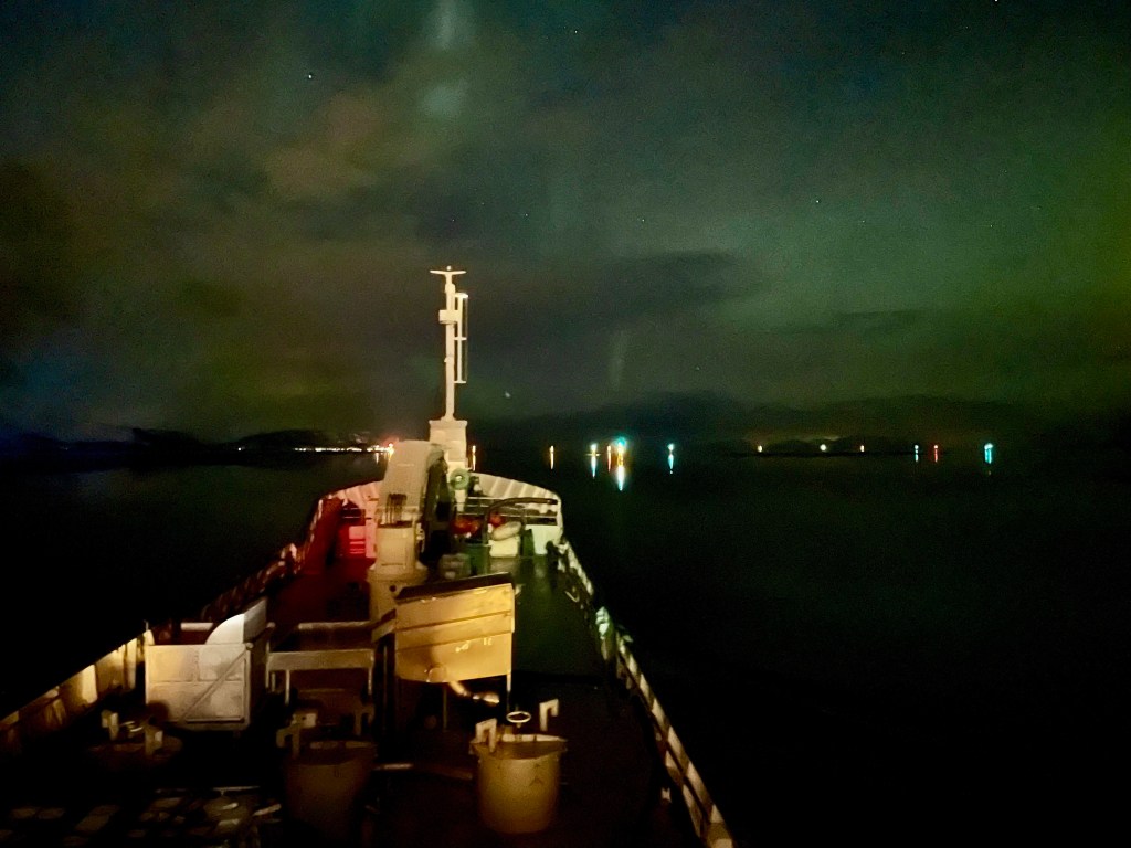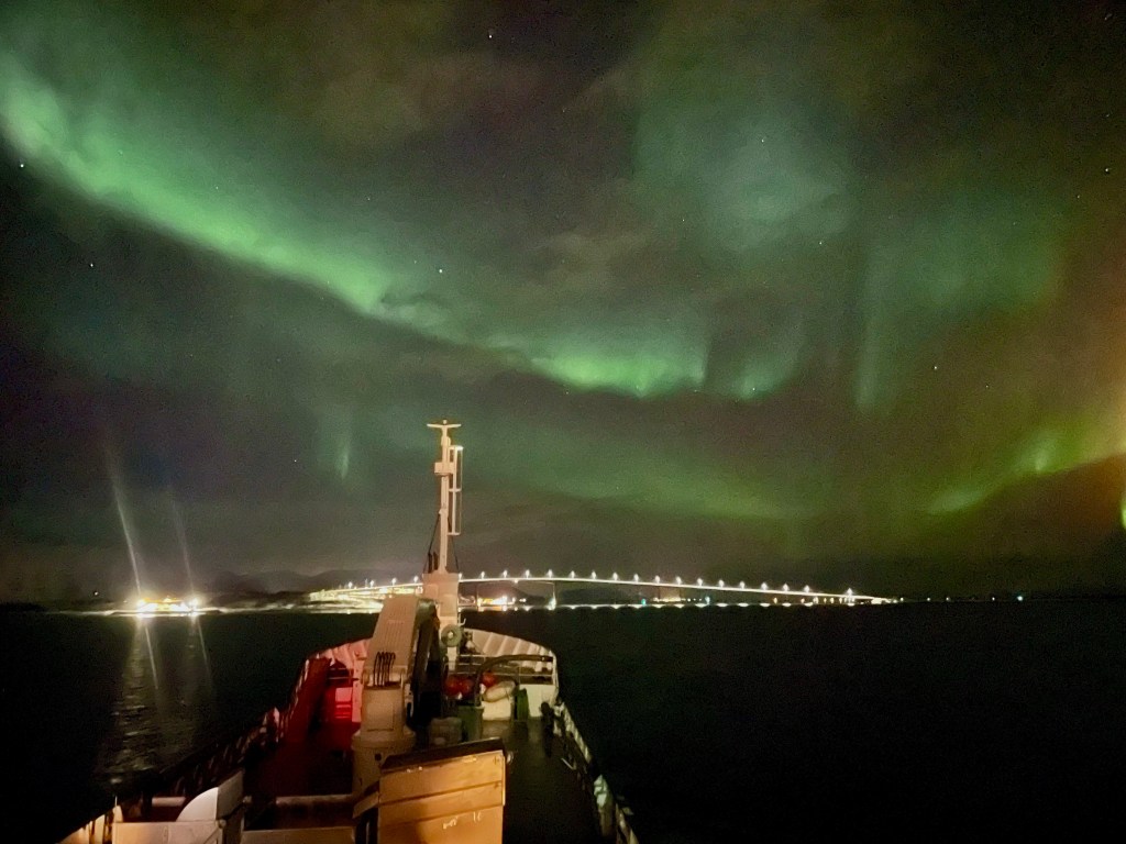 Vi kommer upp genom Raftsundet och jag tar över vakten.