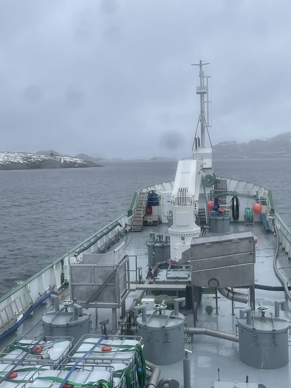 Ja det är upp och ner längs Norska kusten och vädret är typiskt Aprilväder. Solsken en dag och sedan snöstorm nästa.