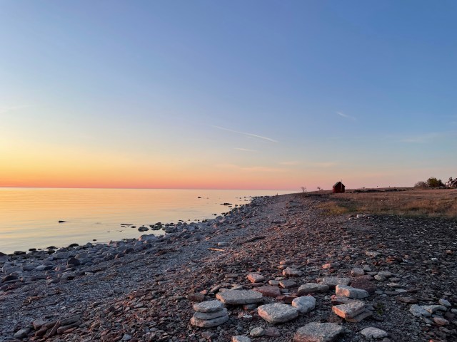 Det blev currygryta till kvällen. Vinden avtog rejält och vi tog en promenad för att se solnedgången.