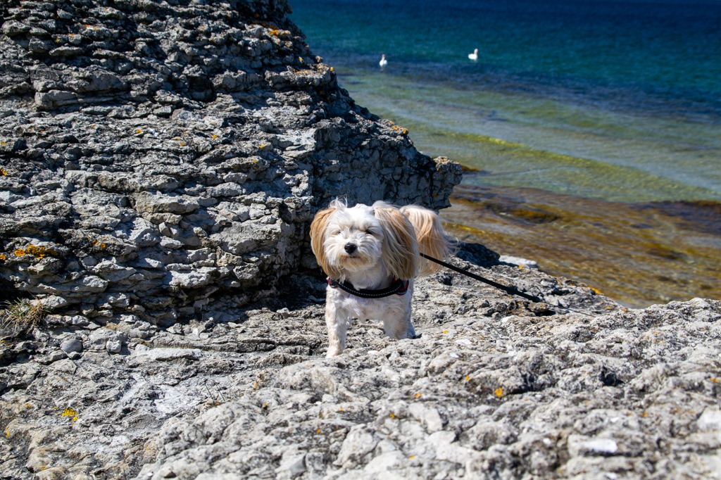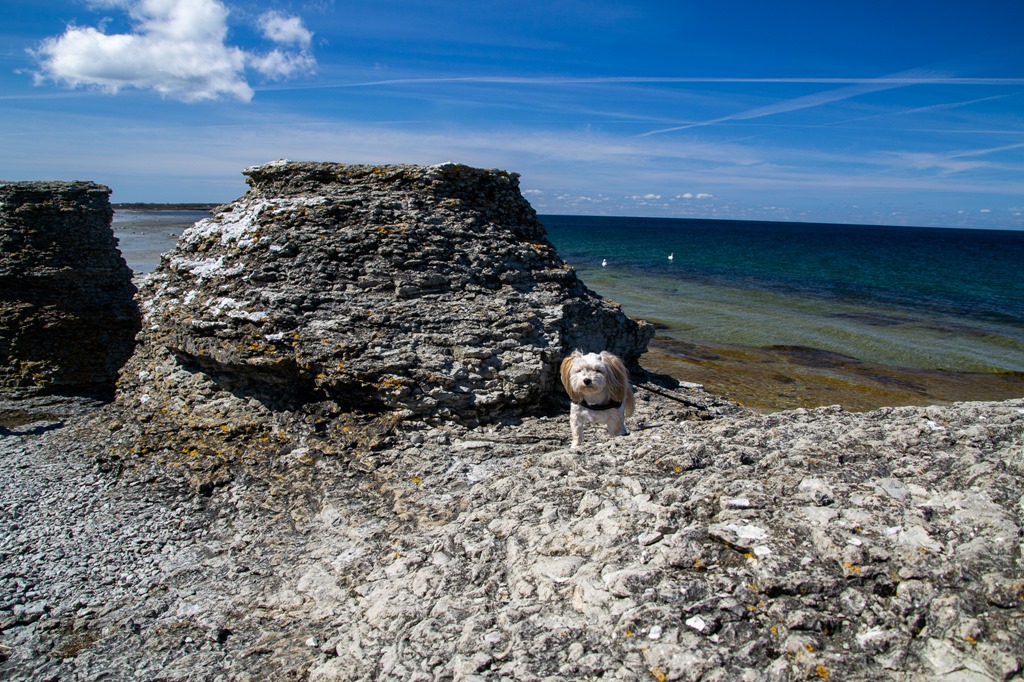Vi körde för att tanka lite innan vi satte kursen norrut mot Byrums Raukar. Vi har ju varit där innan men det är så fint där så vi ville stanna till där igen. Men de har ju blockerat alla parkeringsfickor så vi fick ställa oss vid sidan av grusvägen.