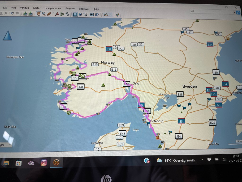 På söndagen så satte jag mig med planeringen av vår reserutt inför semestern.
