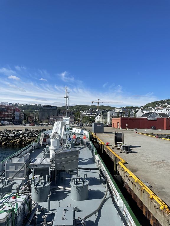 I morse kom vi till Harstad och ligger mitt inne i byn och blir liggande här hela helgen om det inte dyker om något akut jobb.