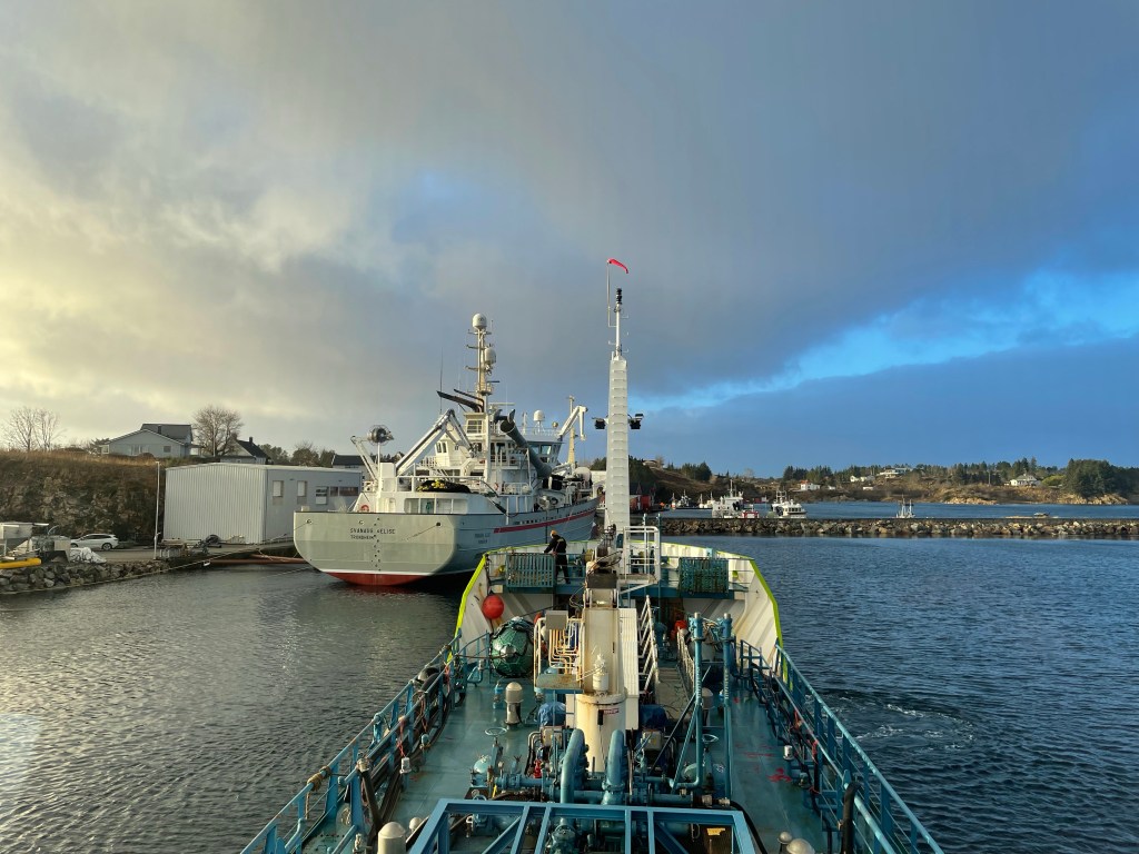 13:50 Förtöjda utanför Svanaug Elise i Dyrvika för bunkring.