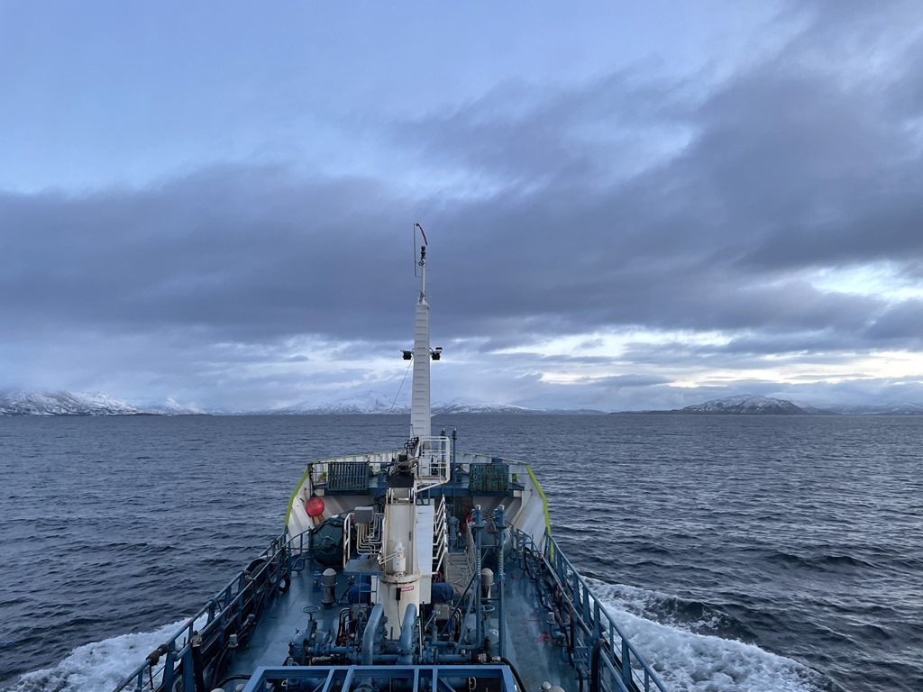 08:00 Kommer på vakt ute på Vestfjorden och äntligen är det lite stilla väder även om det är mulet.