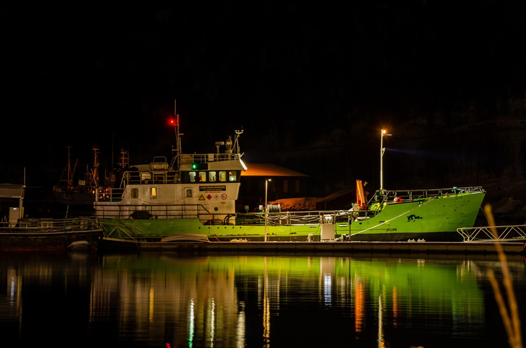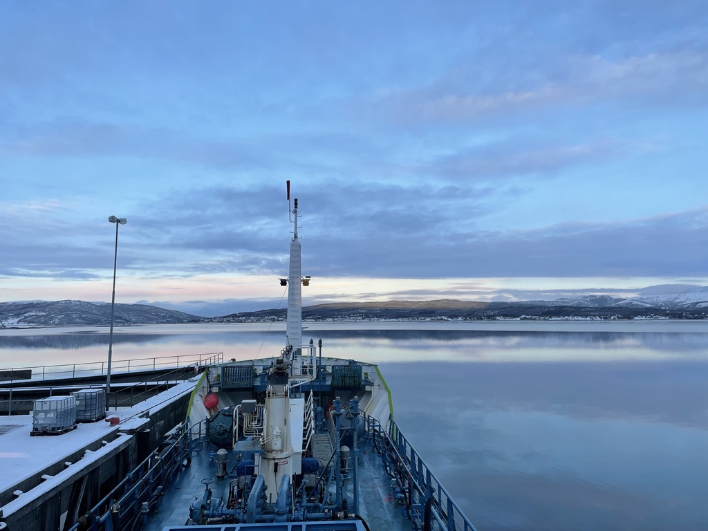 12:20 Förtöjda i Fjelldal och avvaktar order. Vi har ju bara 12 m3 diesel kvar i tankarna.