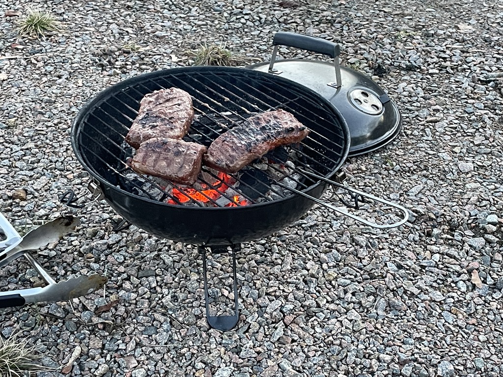 Tillbaka vid husbilen så tog vi lite kaffe utanför och till kvällen så grillade jag lite lammfile.