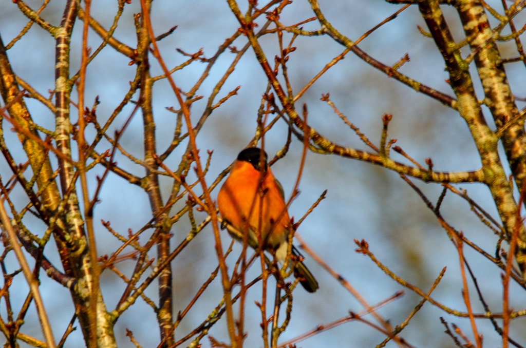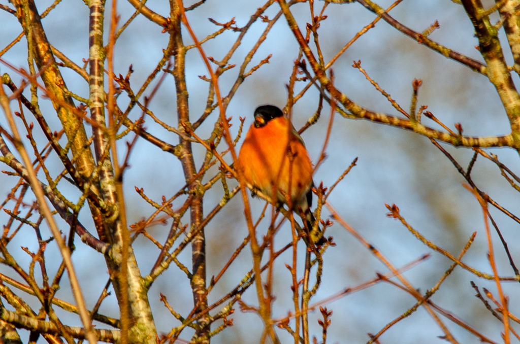 Vaknade till en riktigt fin kall morgon. Gick en runda och såg lite fina domherrar.