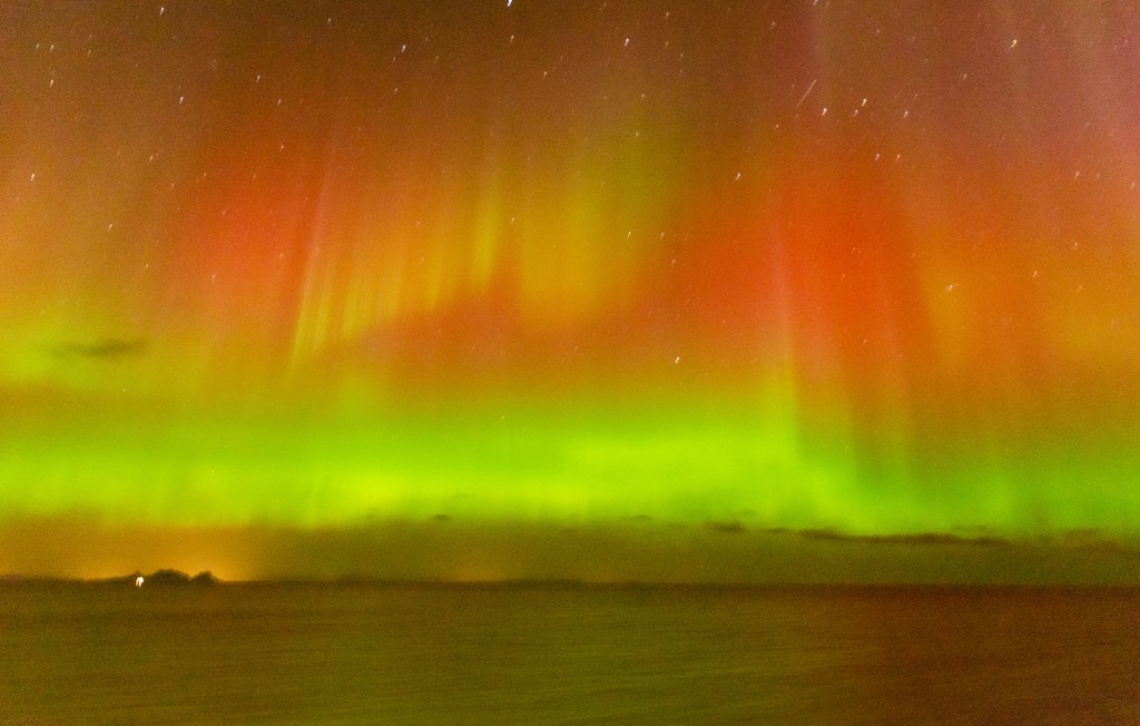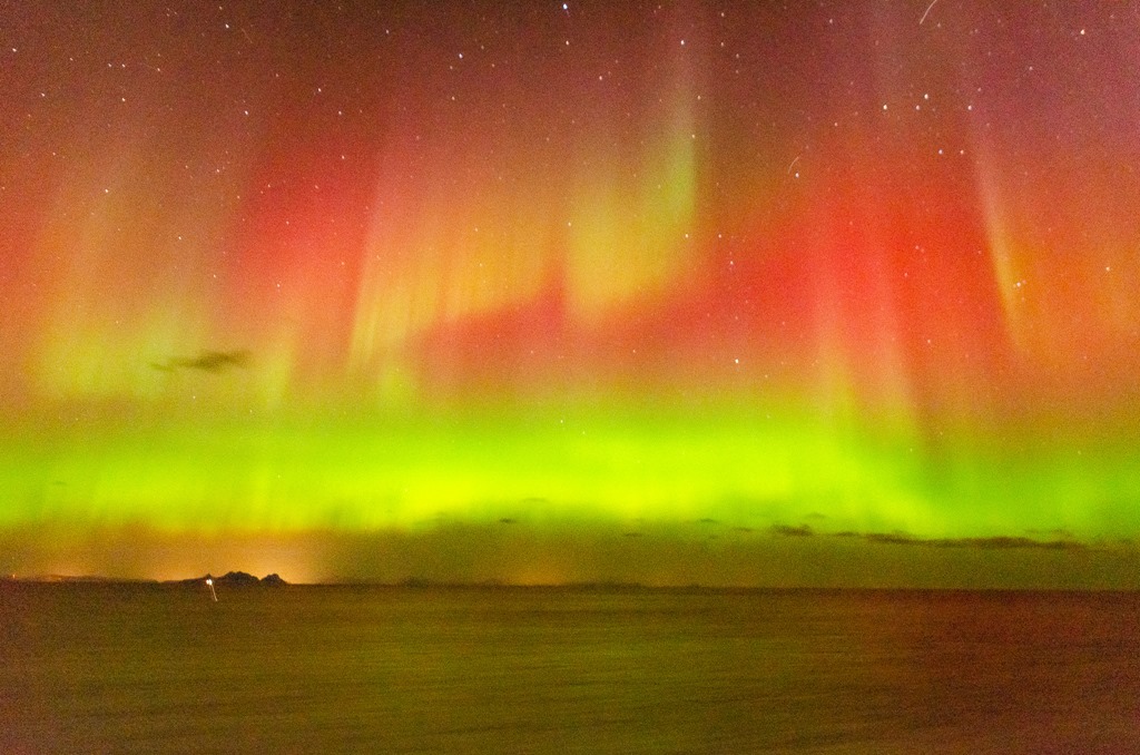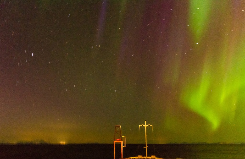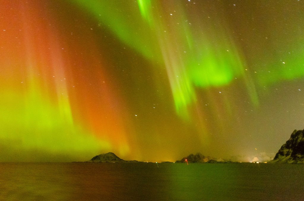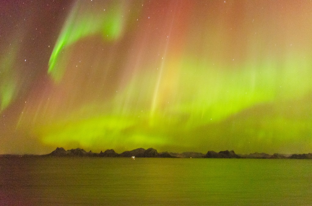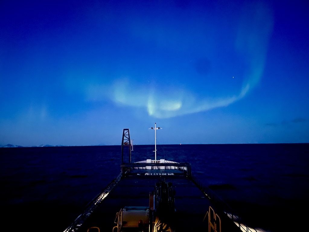 20:00 Kommer på vakt ute på Vestfjorden och det är redan lite norrsken.